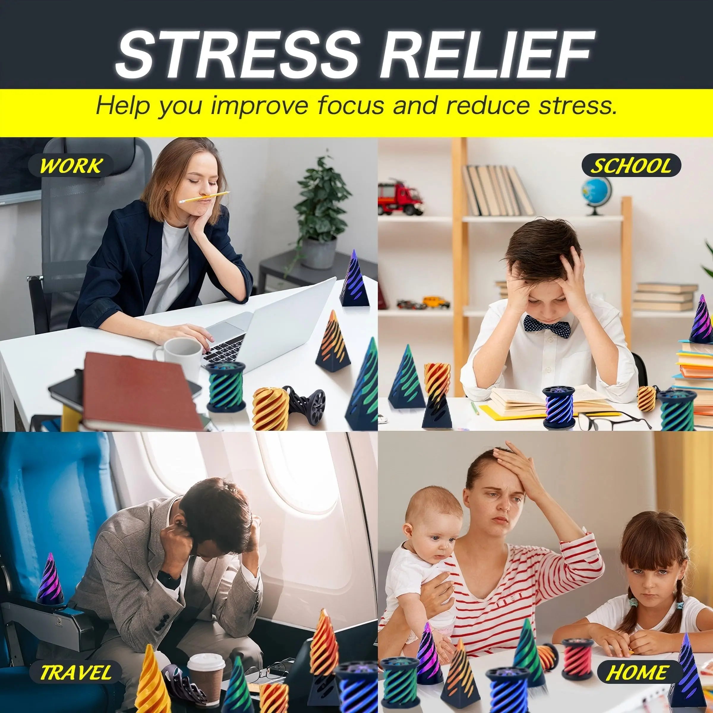 3Pcs Impossible Cone Fidget Toys, 3D Printed Spiral Cone Passthrough Sculpture, Mini Stress Relief Desk Decor, Sensory Anxiety Relief Toy for Adults, Cool Novelty Gift