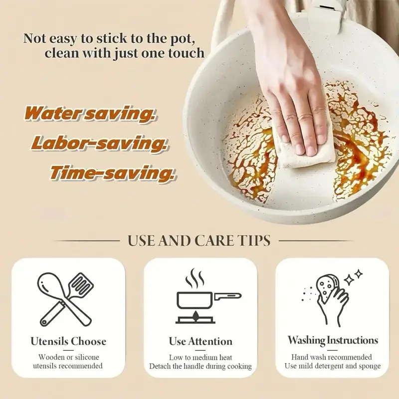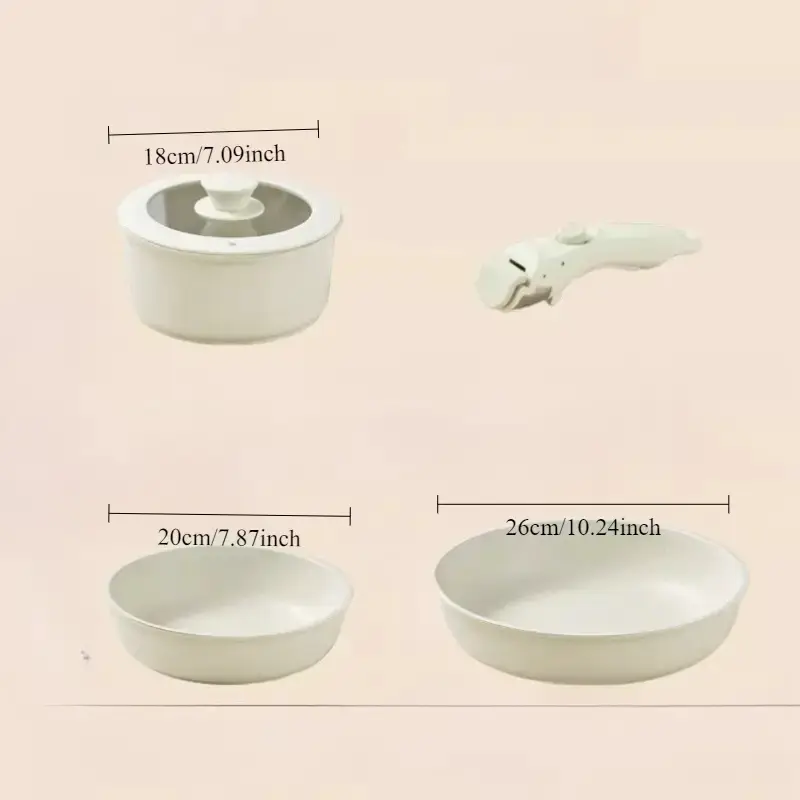 Portable Cookware Set - Lightweight non-stick removable cookware with pots and pans, space saving design suitable for small kitchens, easy to clean and compatible with electric stoves