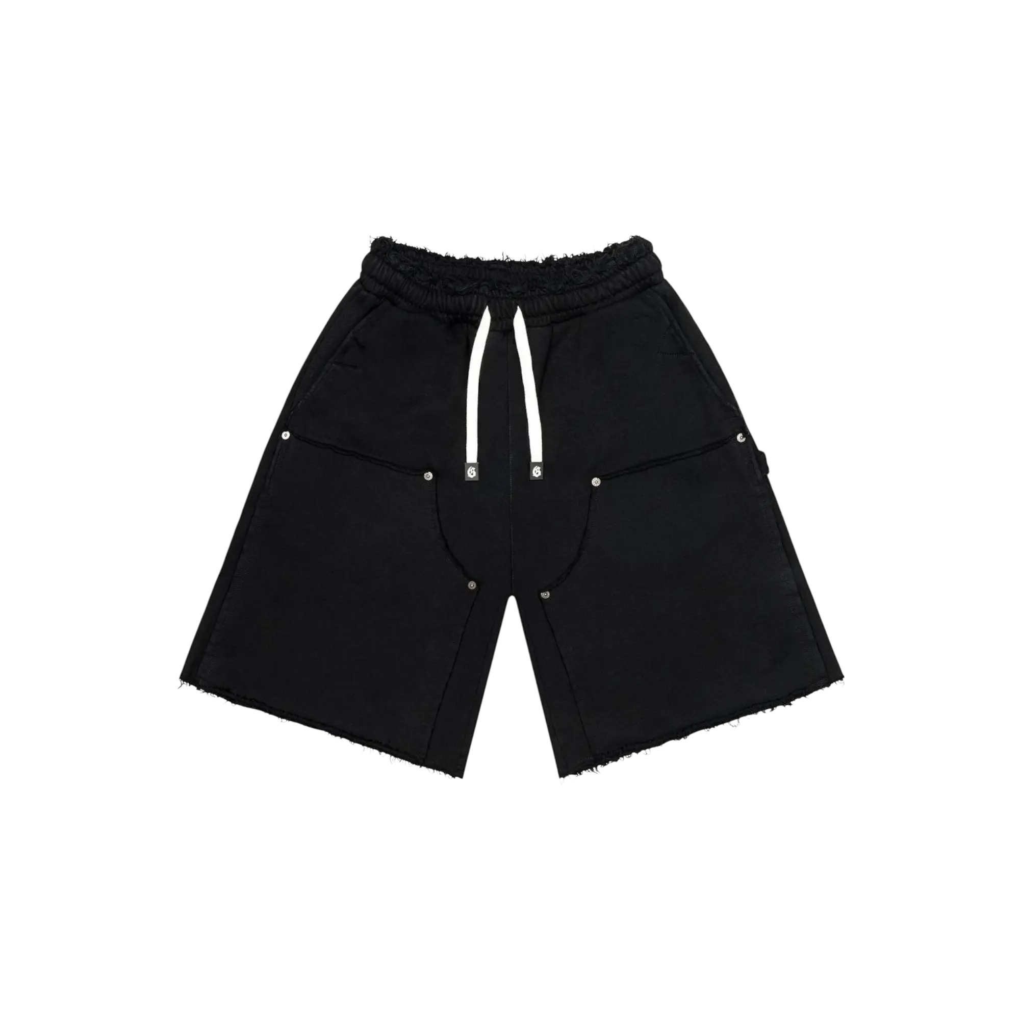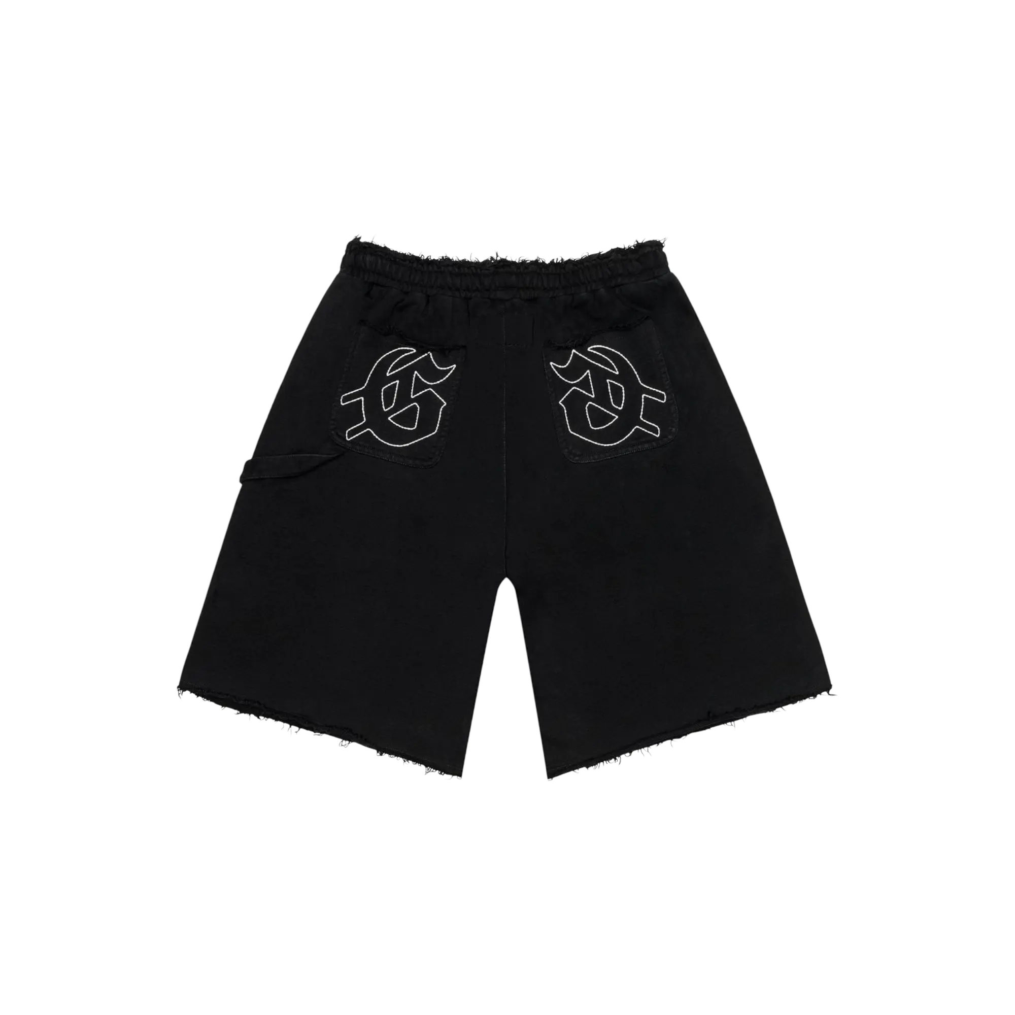 The Godspeed Distressed Carpenter Black Shorts bring rugged workwear vibes with a clean streetwear finish. Made in a black washed tone with distressed detailing throughout, they feature classic carpenter styling like utility pockets and sturdy construction for an authentic look. Easy to wear with tees, hoodies, or button-ups, these shorts are a strong everyday piece that pairs perfectly with sneakers for a complete summer fit.
