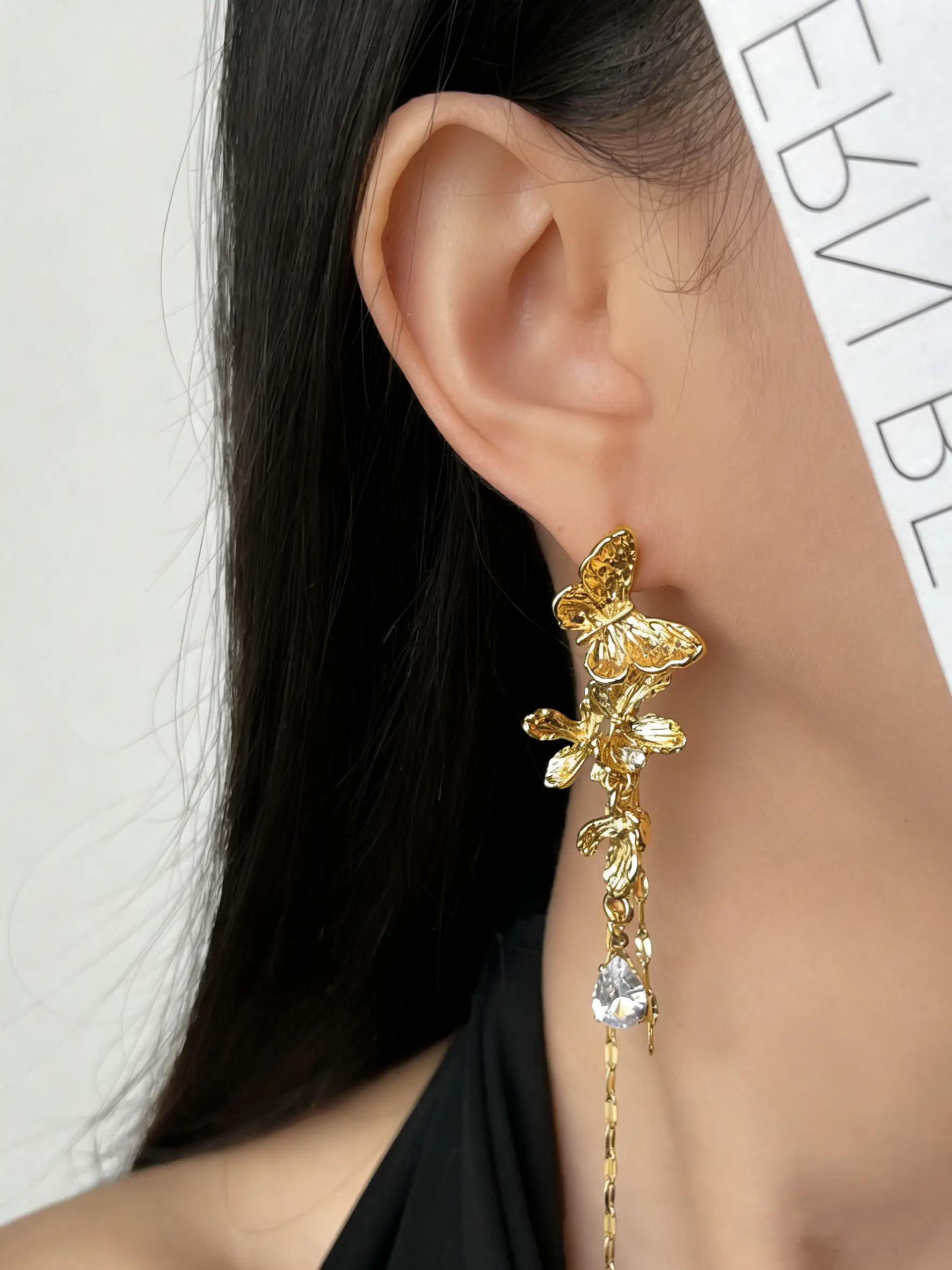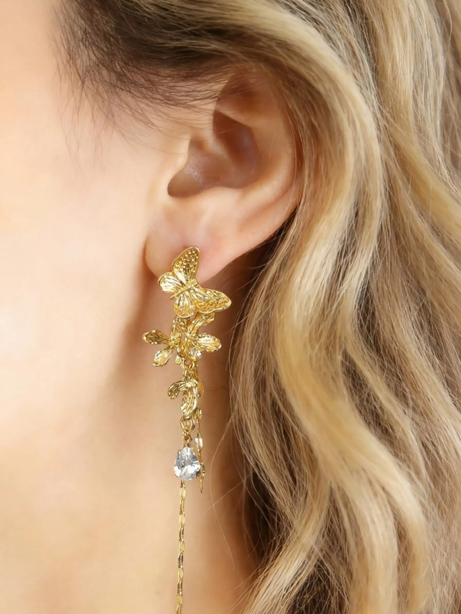 Butterfly Motif Earrings with Cubic Zirconia, Elegant Long Tassel Design, Perfect for Parties and Everyday Wear, Light-Luxury Style Jewelry