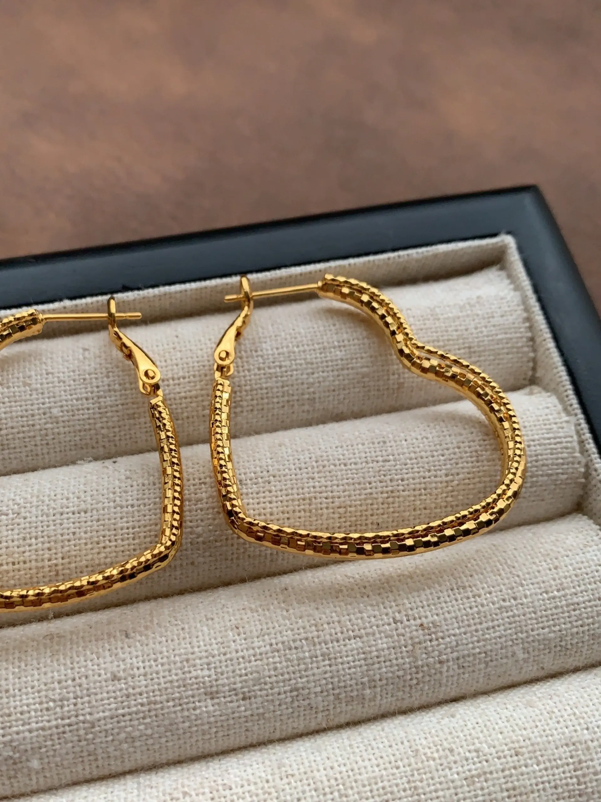 Stylish Heart-Shaped Hoop Earrings, Light-Luxury Design, Perfect for Everyday Wear & Festive Occasions, Ideal Gift Choice