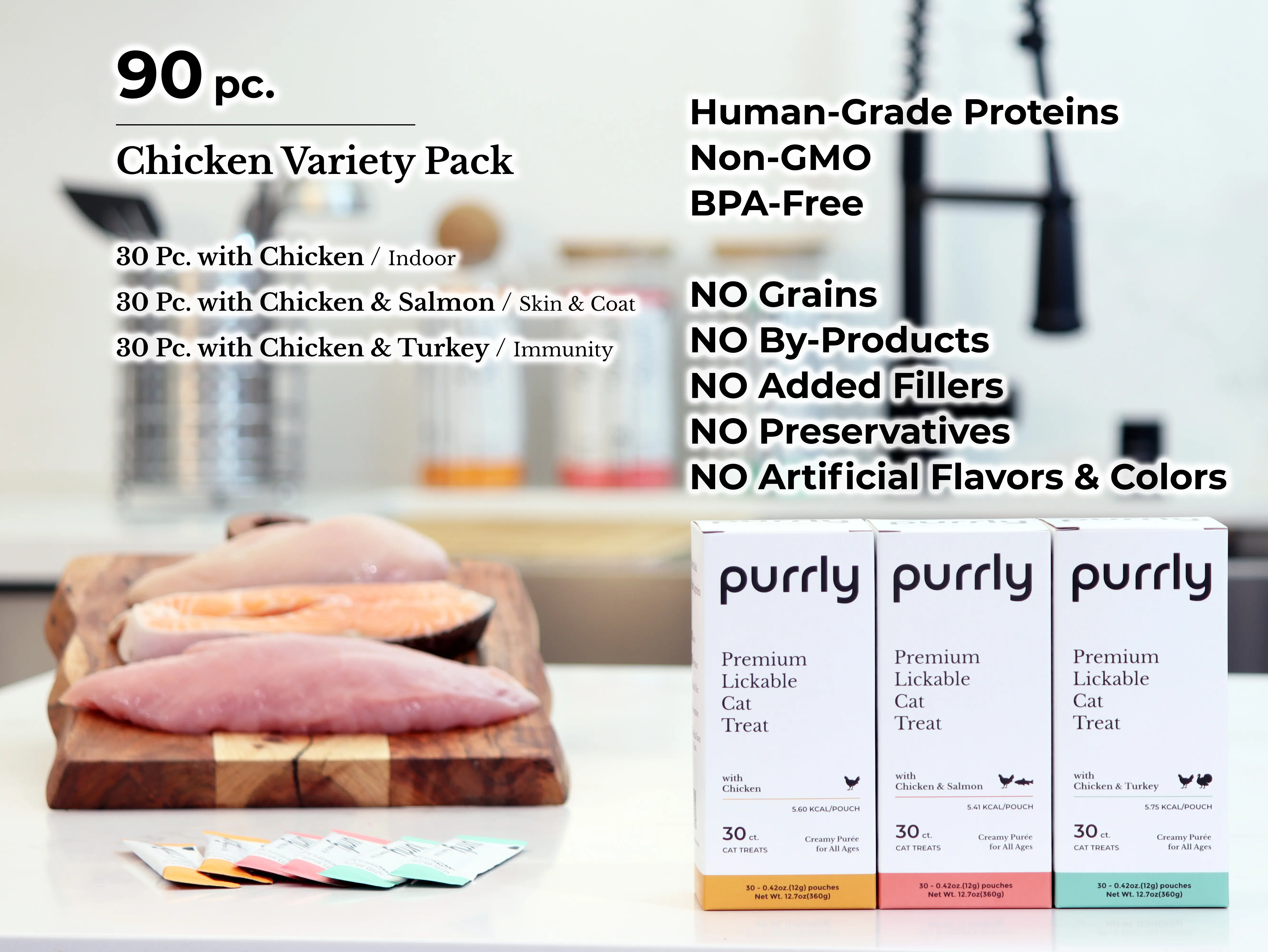 ·HUMAN-GRADE PROTEIN SOURCES - Purrly uses only human-grade meat and fish as the primary protein source, exceeding industry standards and ensuring exceptional taste and unmatched nutritional value for your cat. These exquisite treats elevate snack time beyond ordinary treats, offering a truly gourmet experience that satisfies your feline's discerning palate. Each pouch serving unparalled quality and nutrition.