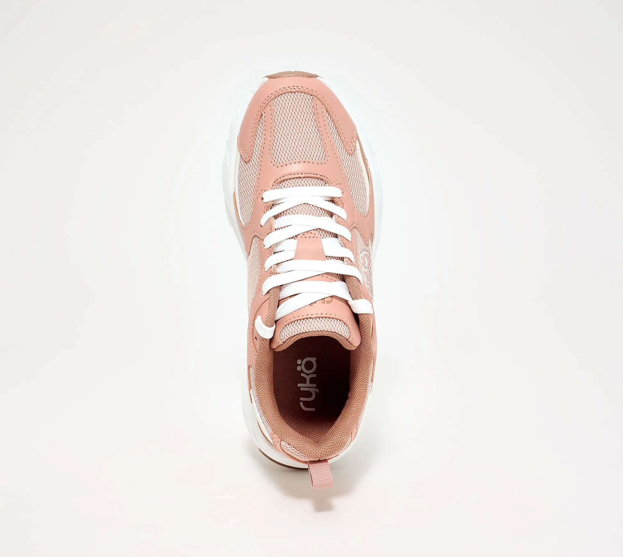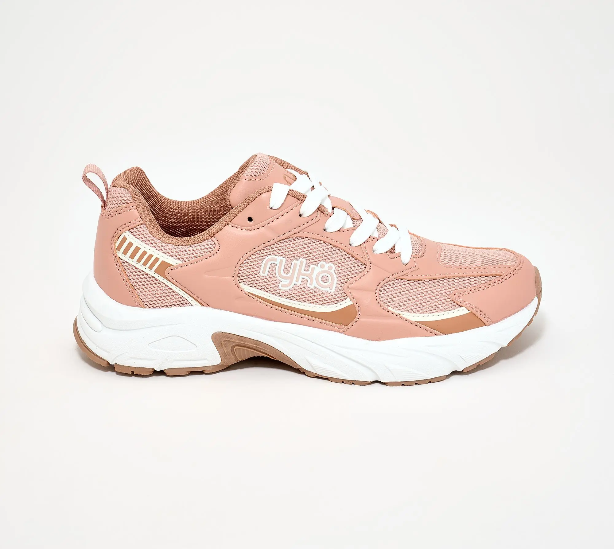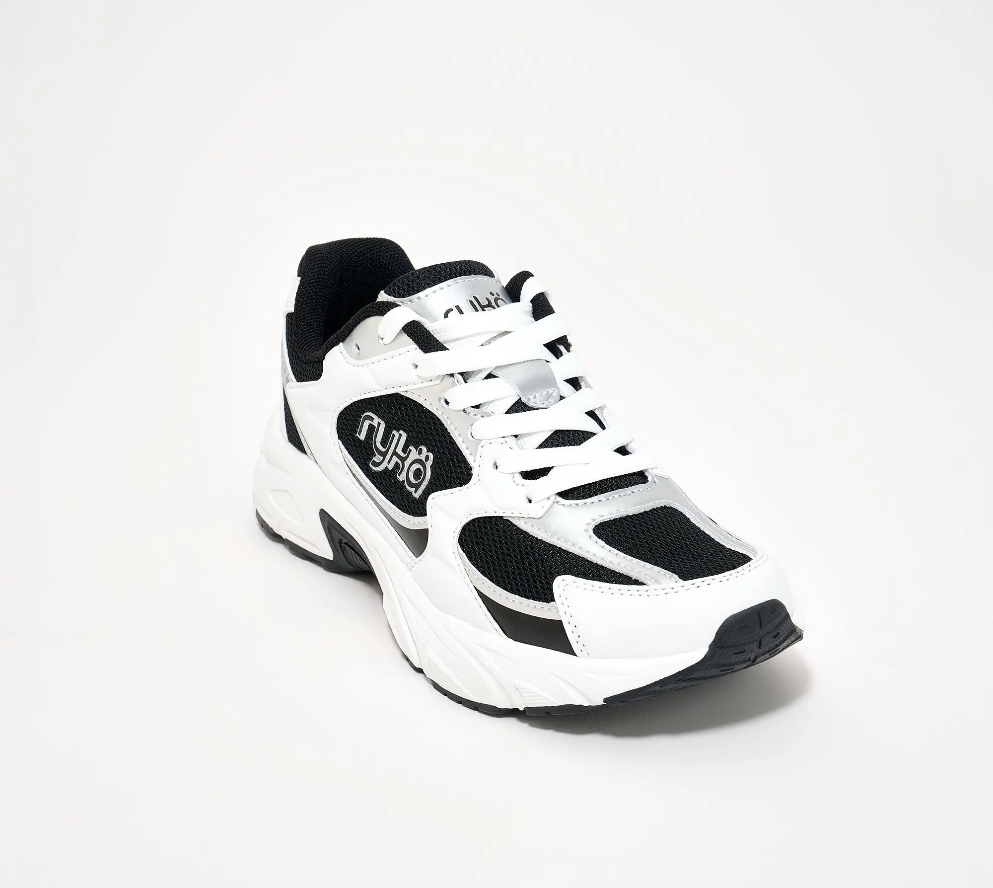Ryka Generation - everyday retro walking lace up sneaker. Breathable mesh upper with faux leather overlays. Heel loop for easy on/off. Lace up closure. Padded tongue, heel and collar for cushion. Lightweight ACTIVfoam EVA for soft cushioning. 228g/8.1oz Heel to toe drop:12mm Sole Thickness:approx 1.75" Fit:True to Size COO:Import