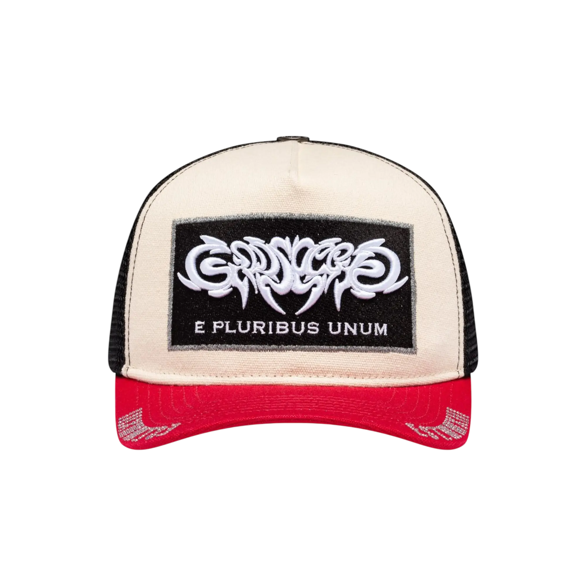 The Godspeed “E Pluribus” Red/White Trucker delivers bold, classic trucker style with an Americana-inspired edge. Featuring a red front panel with a white mesh back and standout E Pluribus branding up front, it’s built with a structured fit, breathable mesh for all-day comfort, and an adjustable snapback closure for an easy, secure fit. A clean accessory that adds a strong pop of color to any tee, hoodie, or summer fit.