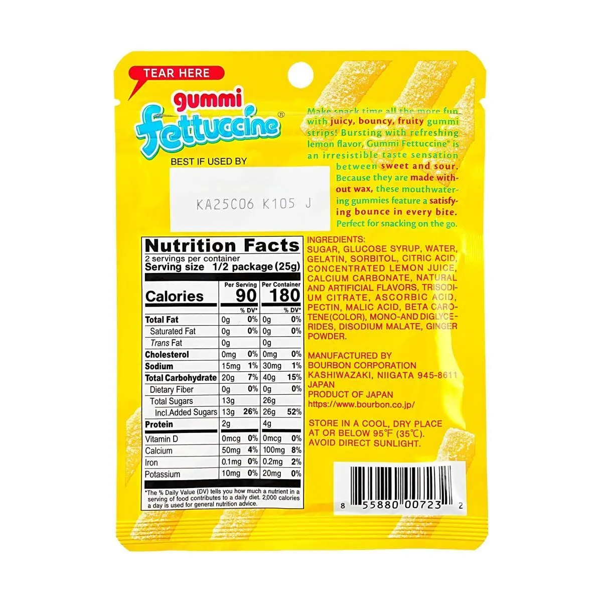 Bright, zesty, and irresistibly chewy, Gummi Fettuccine Lemon is a fun and flavorful Japanese gummy candy that delivers the perfect balance of sweet citrus flavor and tangy lemon zing. Imported from Japan, this popular candy is loved for its unique fettuccine-shaped gummy strips and satisfyingly firm chew.