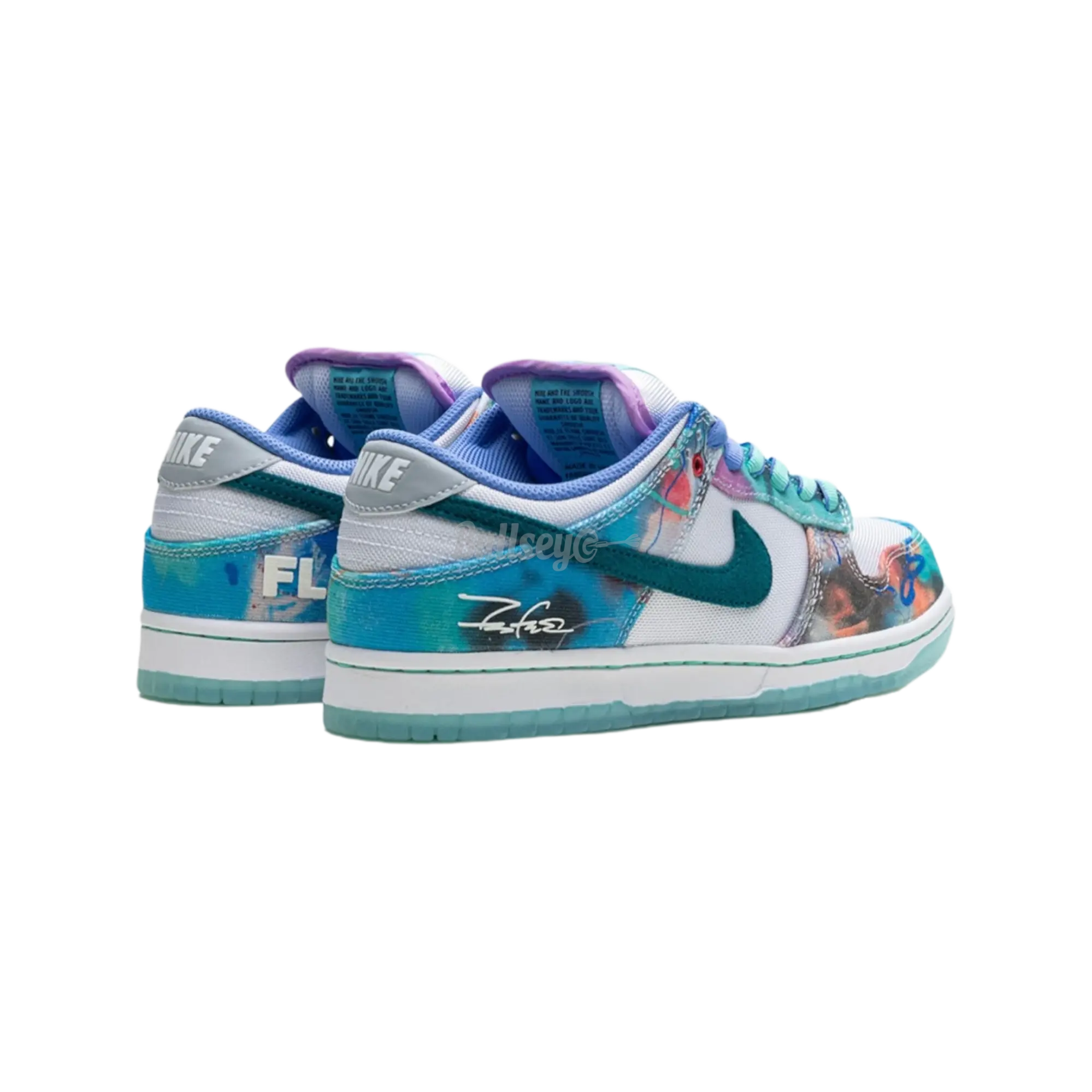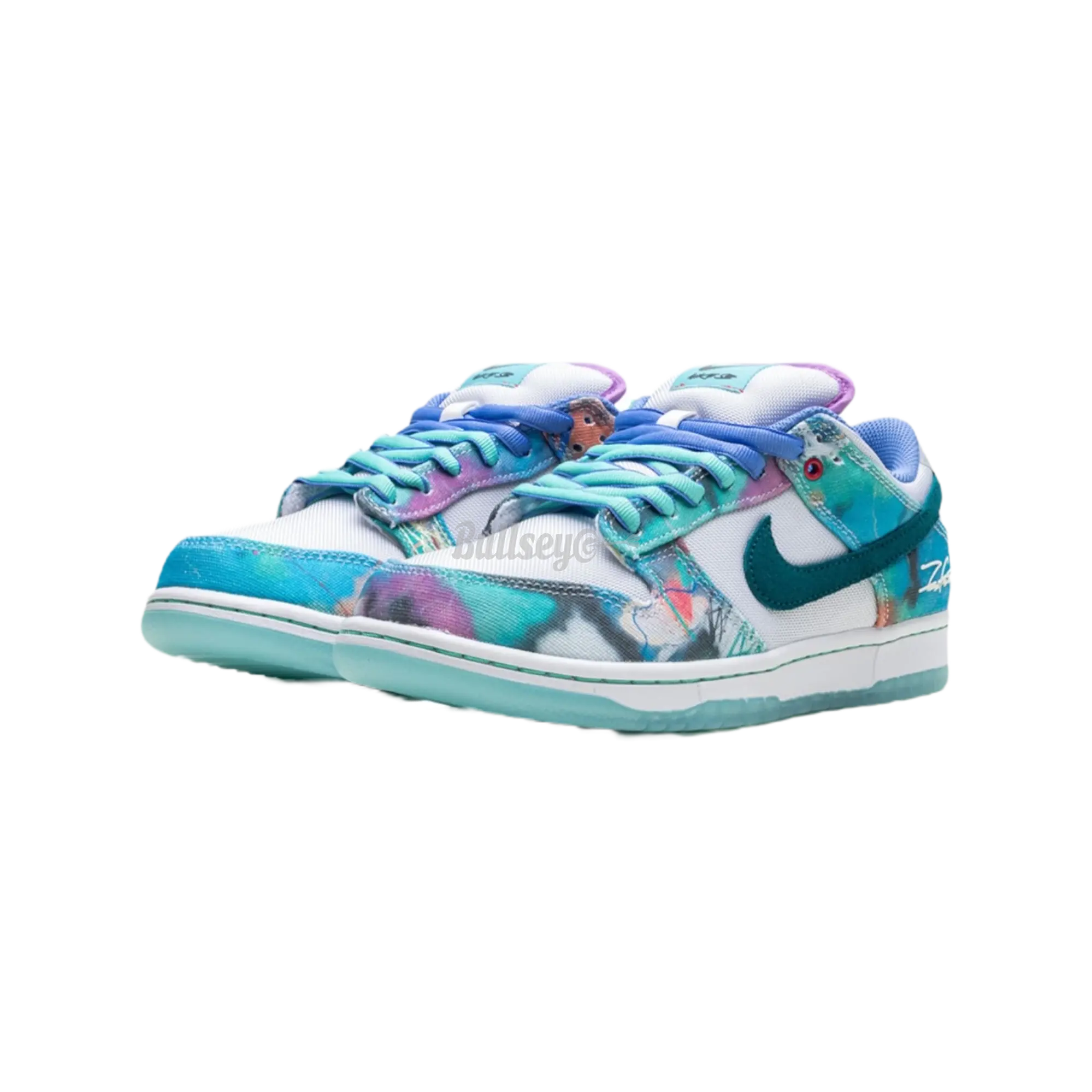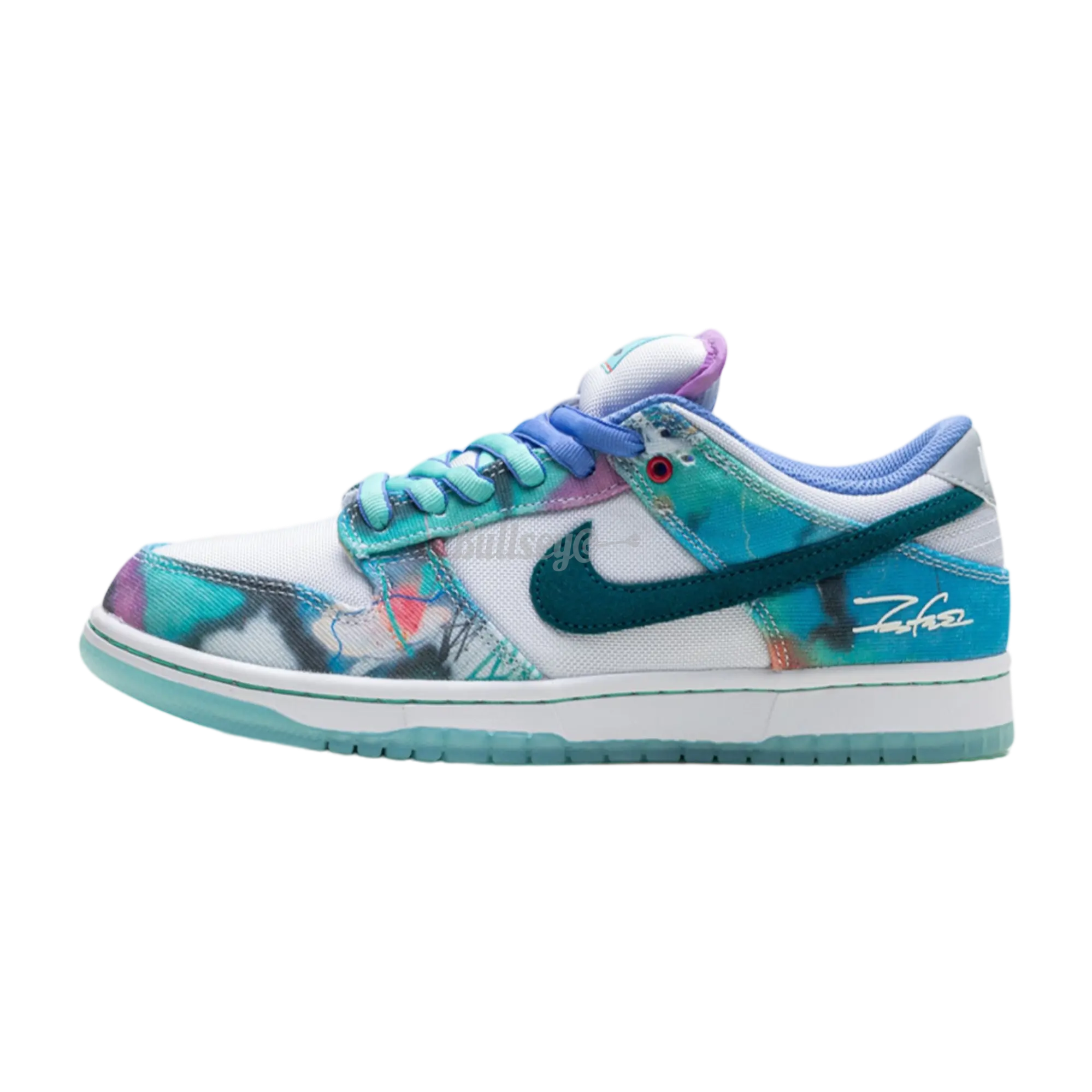The Nike SB Dunk Low "Futura Laboratories Bleached Aqua" blends innovative design with vibrant colors. Stand out with these unique sneakers that offer exceptional style and comfort. Featuring a bleached aqua upper, contrasting black accents, and the iconic Futura Laboratories branding, these shoes make a bold statement. The padded tongue and Zoom Air cushioning ensure a comfortable fit, while the durable rubber outsole provides excellent grip for all-day wear. Whether you're skating or collecting, the Nike SB Dunk Low "Futura Laboratories Bleached Aqua" is a must-have for any sneaker enthusiast. Elevate your footwear game with this distinct and stylish pair.