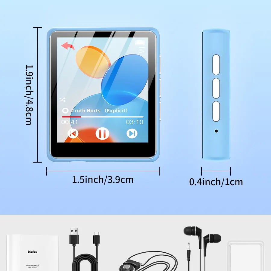 Highly sensitive touch screen, Mp3 player with the speaker. With 5.0 Bluetooth, the body is small and weighs about 51 grams. You can turn up the volume and hang it on your travel bag. Or put it on the table to enjoy music without headphones and other equipment. Especially suitable for outdoor running, jogging, traveling, and hiking. Diofox is a brand focused on the audio industry, born for music.