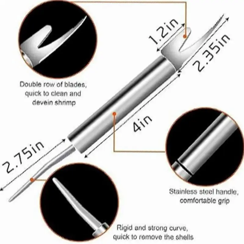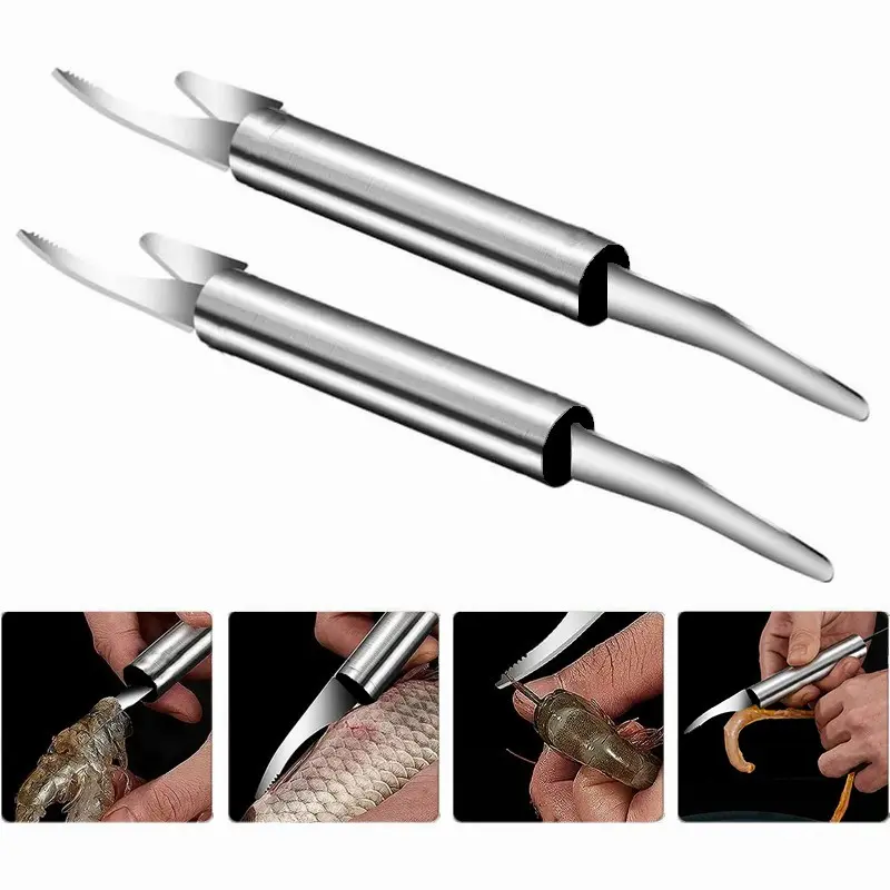 2PCS - 5 In 1 Multifunctional Shrimp Line Fish Maw Knife Stainless Steel Shrimp Deveiner Tool Multifunctional Fast Shrimp Peeler Fish Scale Remover Kitchen Fish and Shrimp Duck Intestine Cleaner