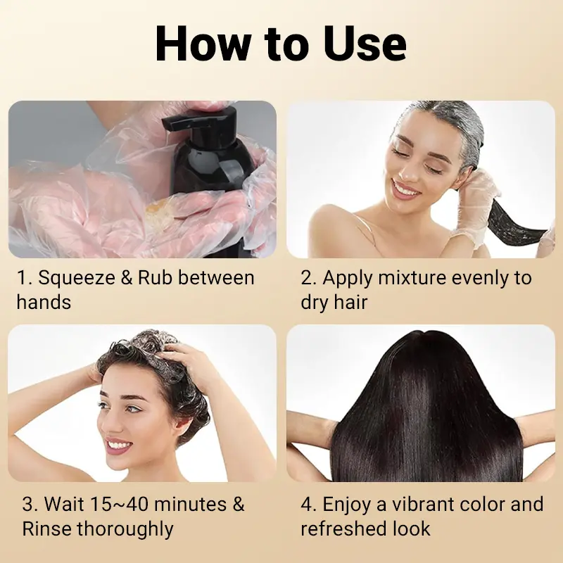 · No Mixing Required: Enjoy a hassle-free hair color application with no brush or bowl required. Wear gloves, squeeze out the shampoo, and make bubbles. Apply to dry hair, rub evenly, wait for 20-40 minutes, and rinse.