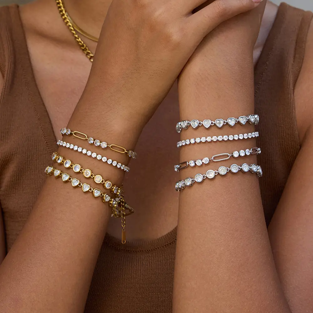 18K Gold Stainless Steel Hollow Heart Double Ring Bracelet Anti-Fade Women Jewelry Trendy Accessory