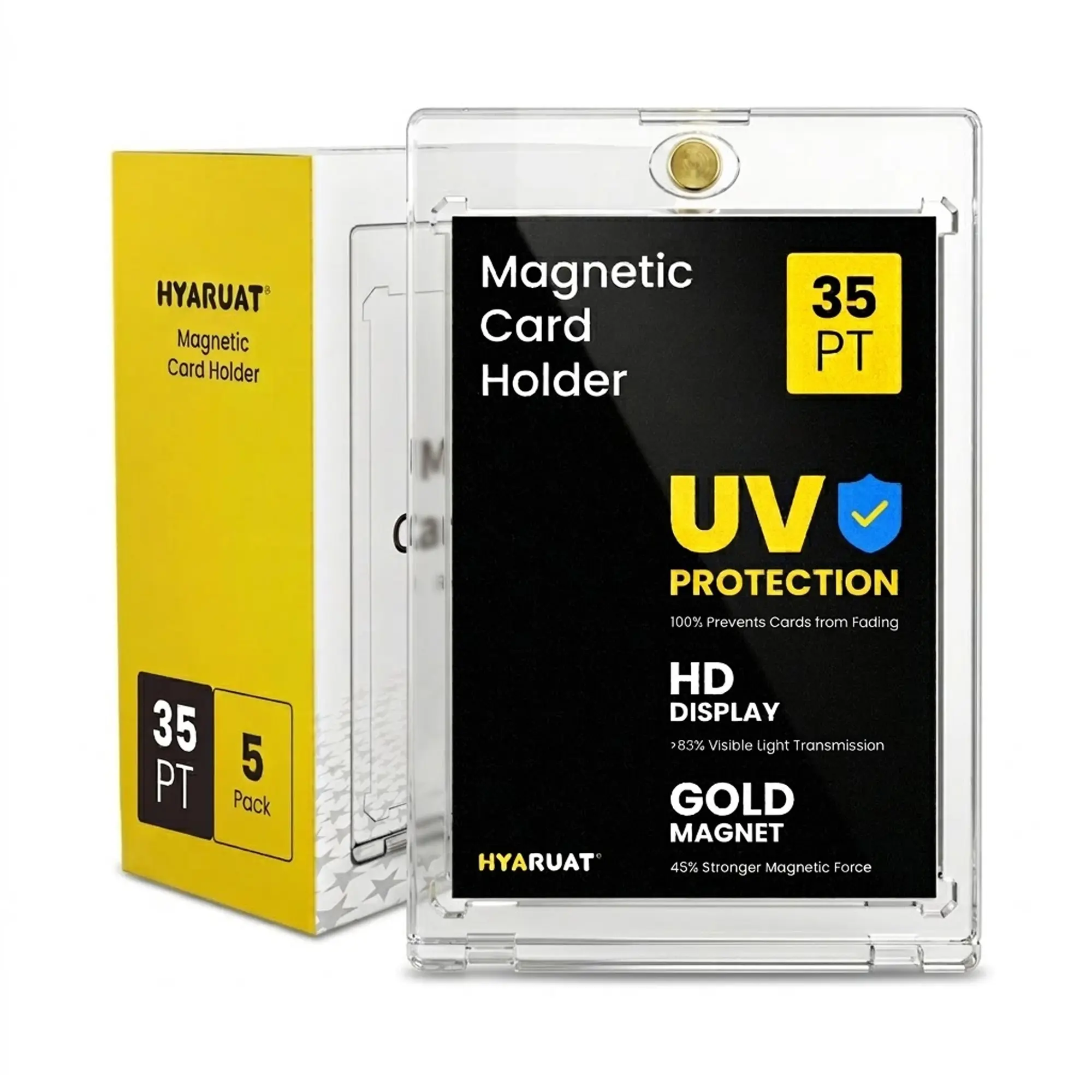Magnetic Card Holders for Trading Cards – 5 Pack One Touch Cases, Fits Multiple Thickness (35PT–360PT), UV Protection, Clear Display