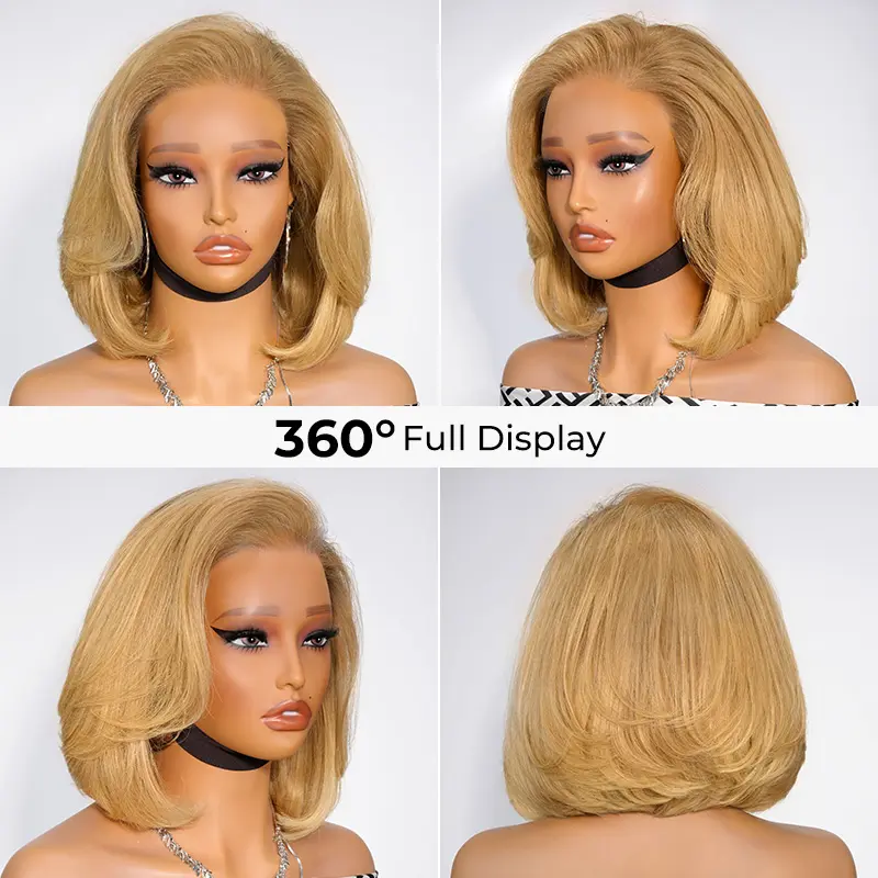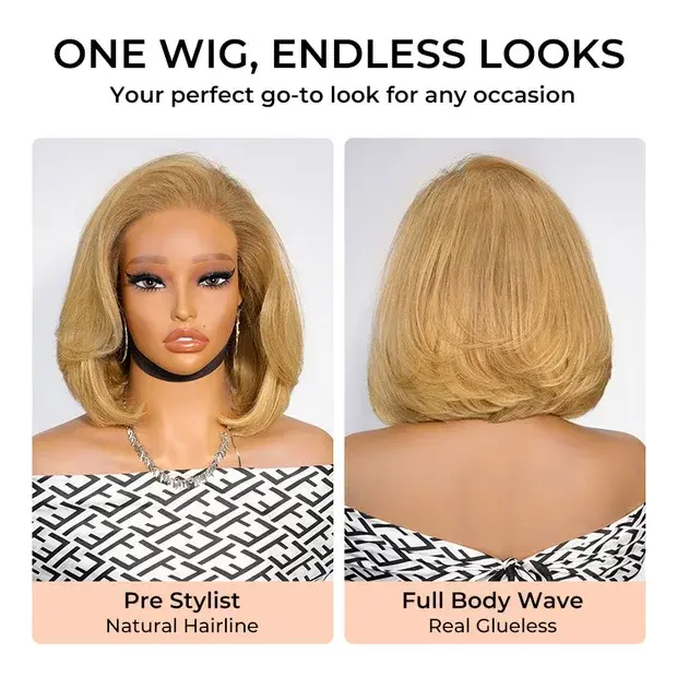 [Clearance]AliPearl Wigs Honey Blonde Pre Styled Straight Layered Glueless 13x4 Lace Front Wig Short Bob Ready to Go Pre Cut Pre-Plucked Wig Human Hair 180% Density