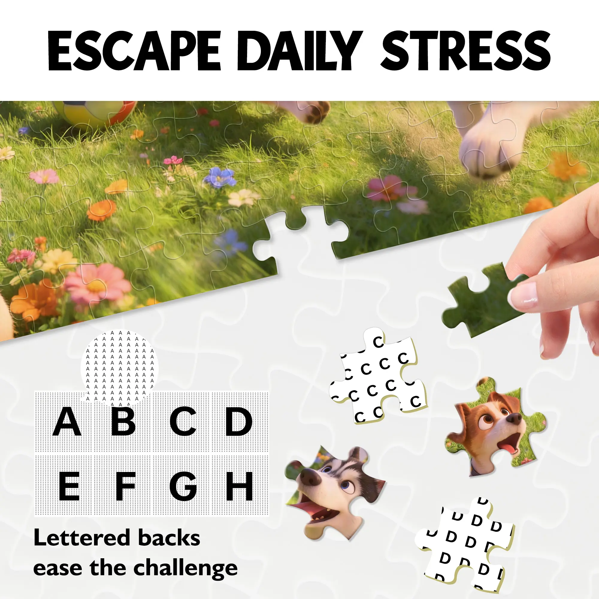 【Sectioned Design, Double the Fun】To make your puzzling experience both enjoyable and accessible, the back of each piece is marked with subtle letters (such as "A", "B", etc.), dividing the puzzle into manageable sections.