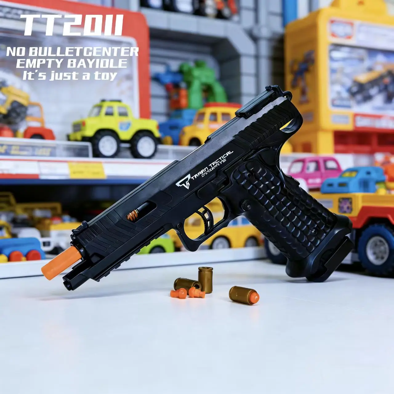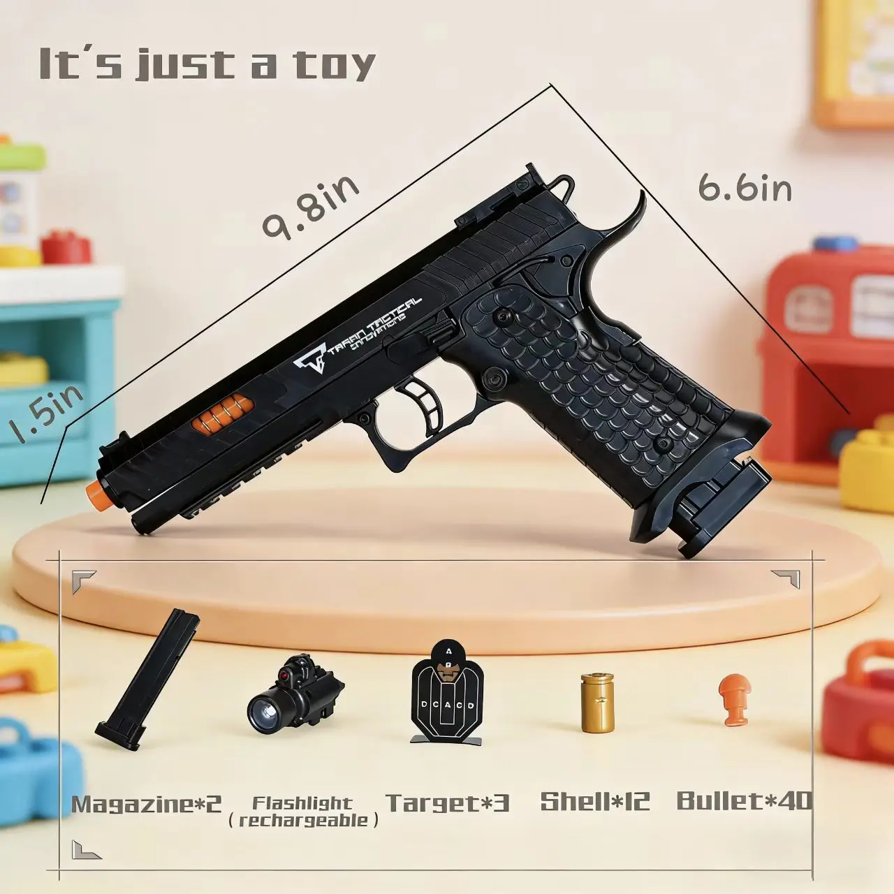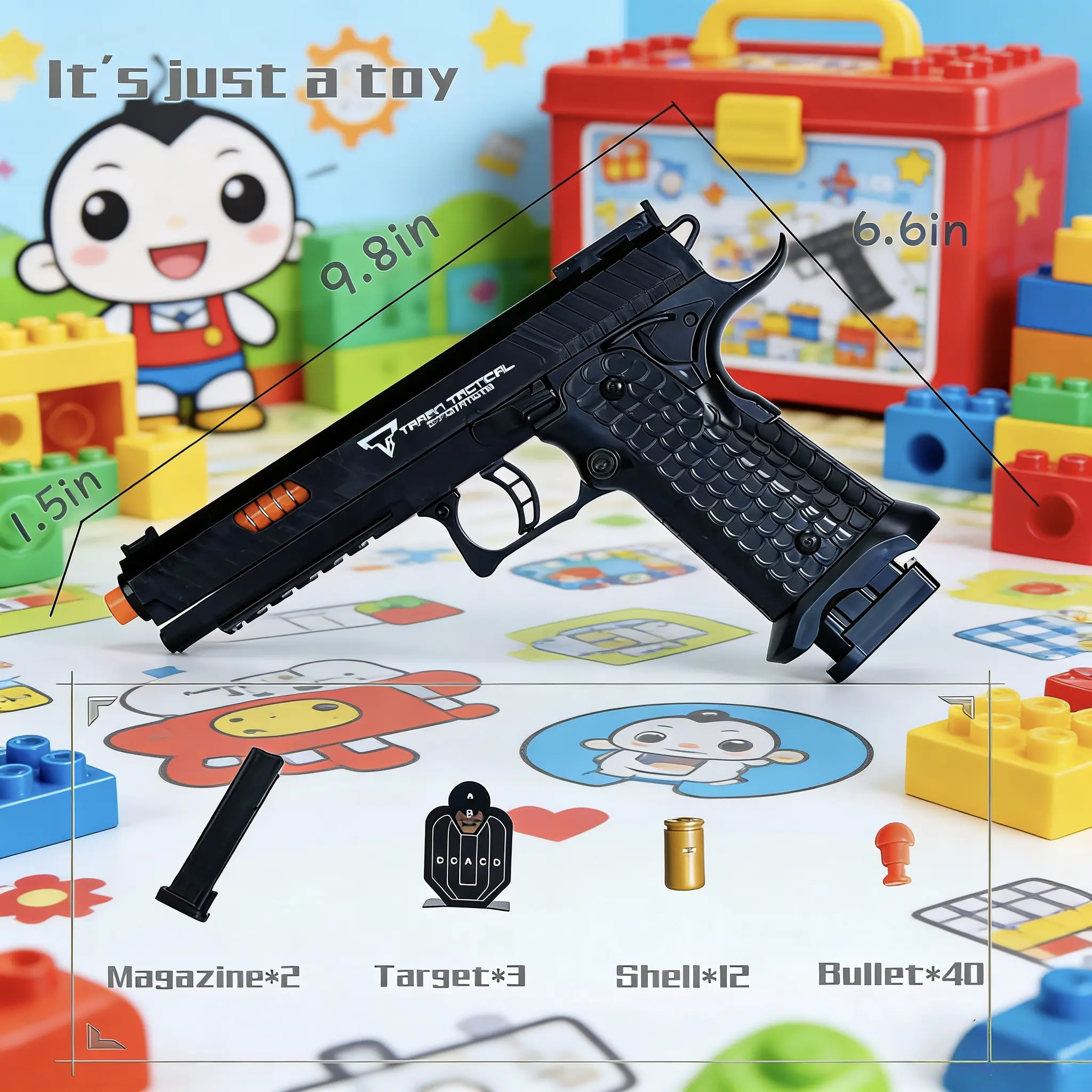 This shell-ejecting blaster uses semi-automatic design for easy play. No repeated manual loading needed — the slide automatically resets after each shot for smooth, continuous fun.