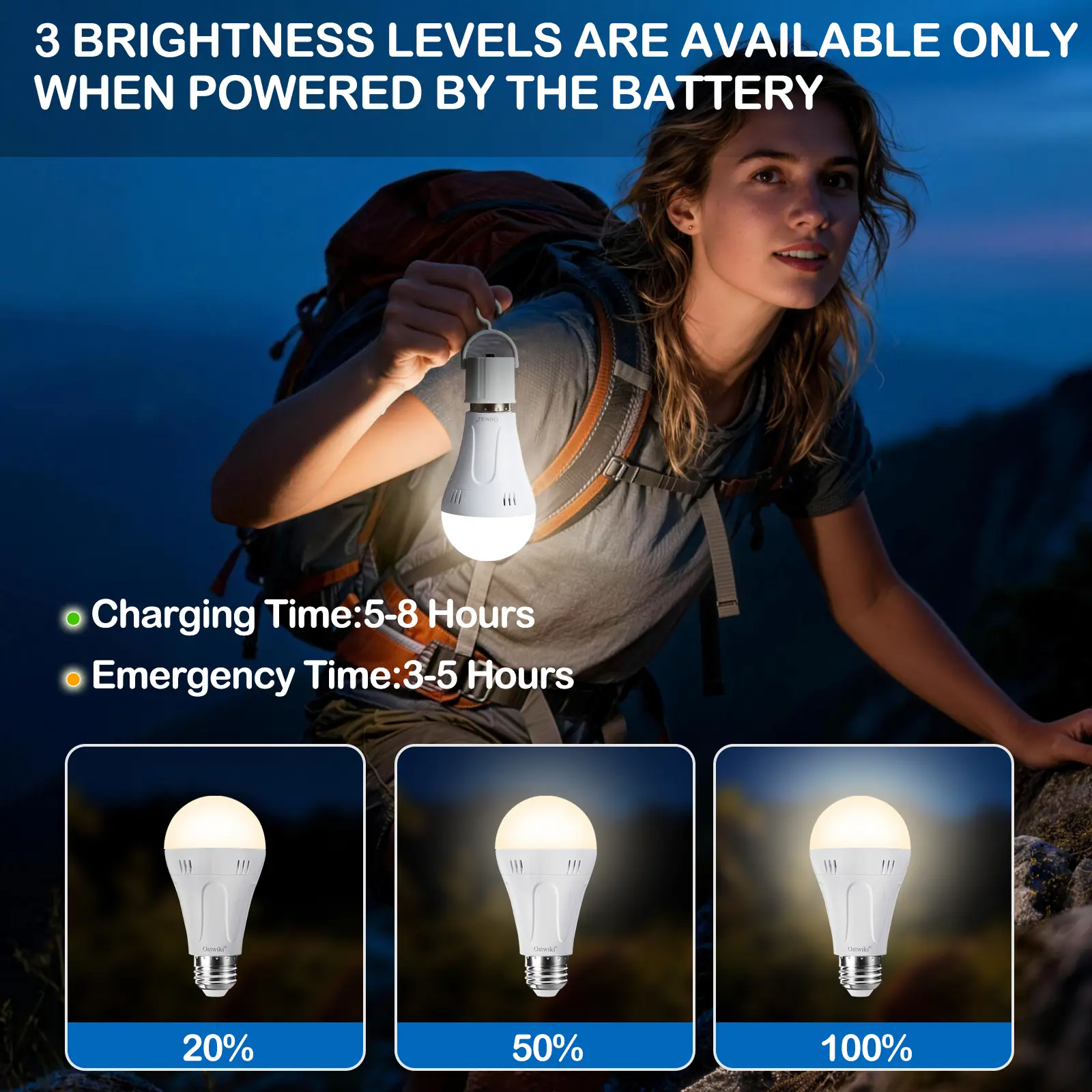 9W LED bulbs with .3000K Warm White light, 450 lumens, 85–265V input reduce energy costs and frequent bulb replacements. For long-term storage, recharge every 60 days to maintain battery life.