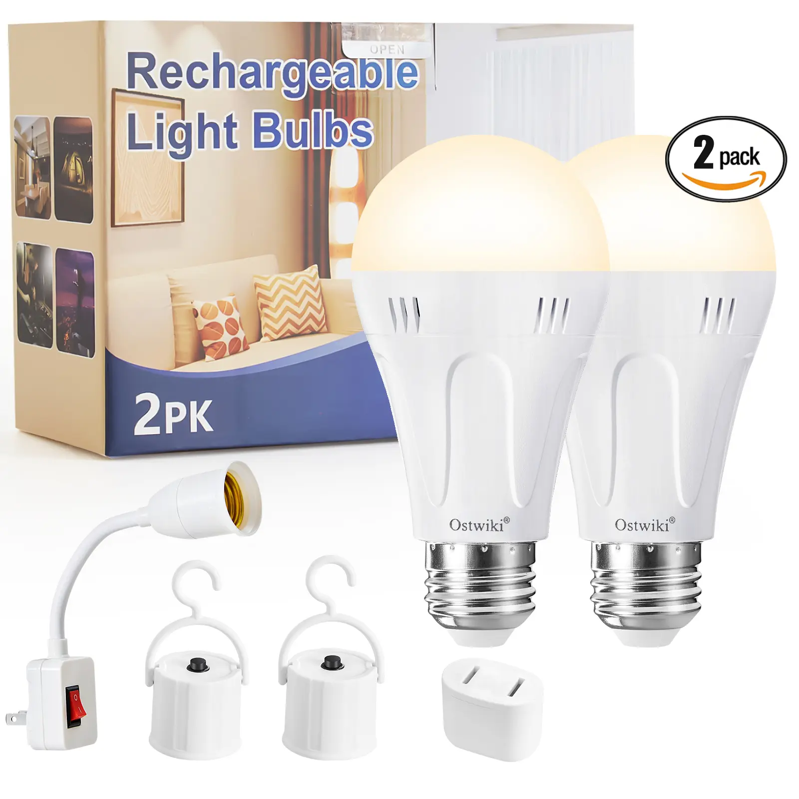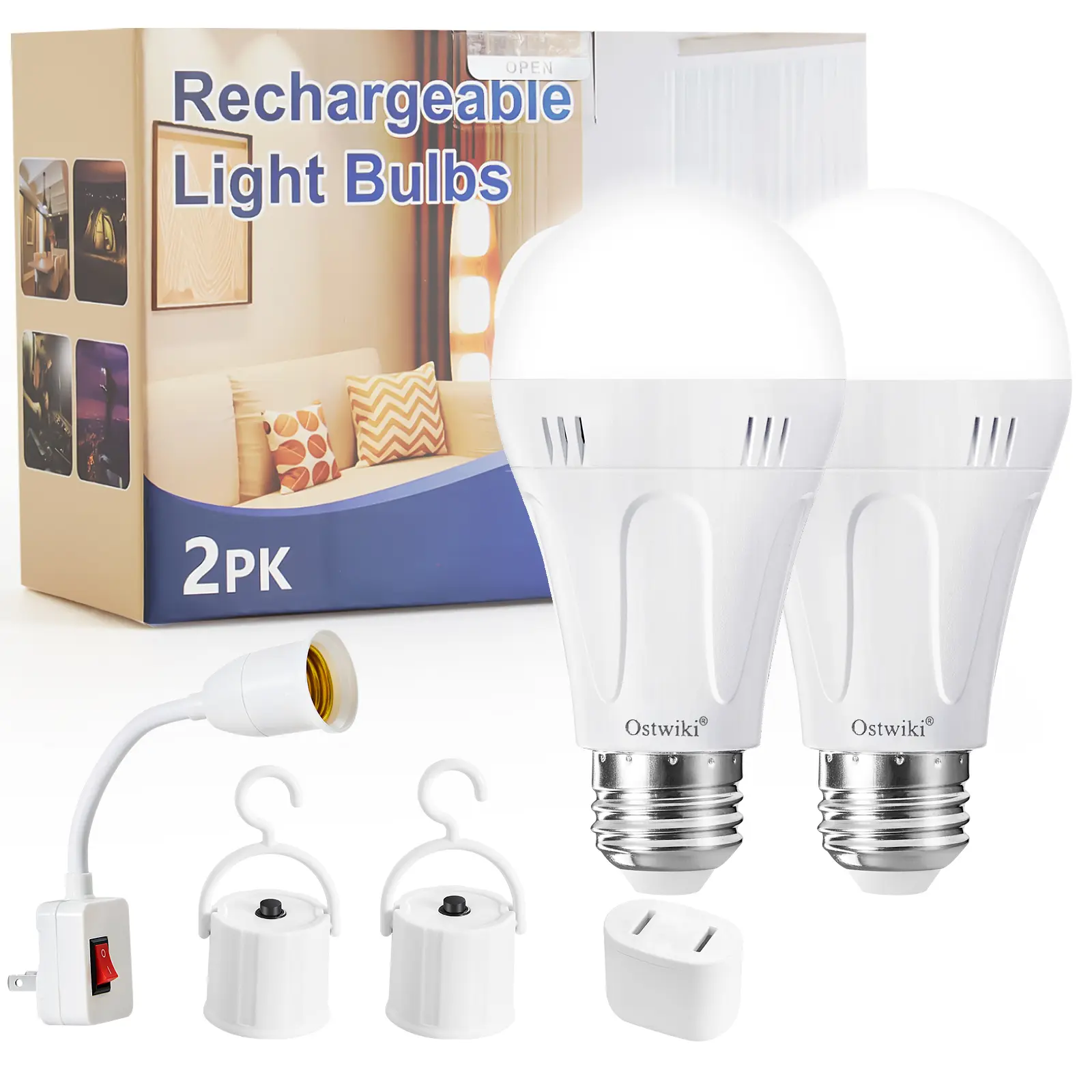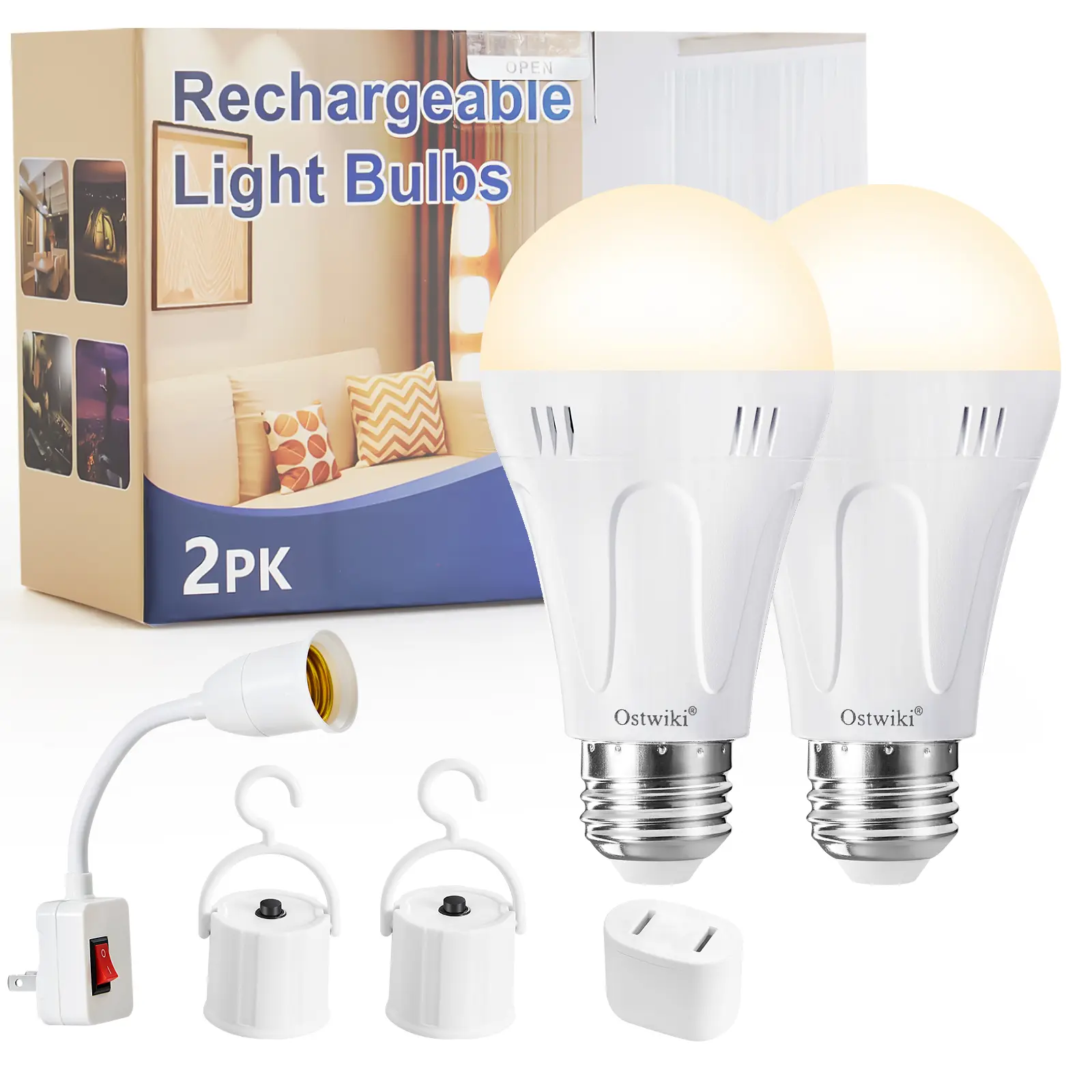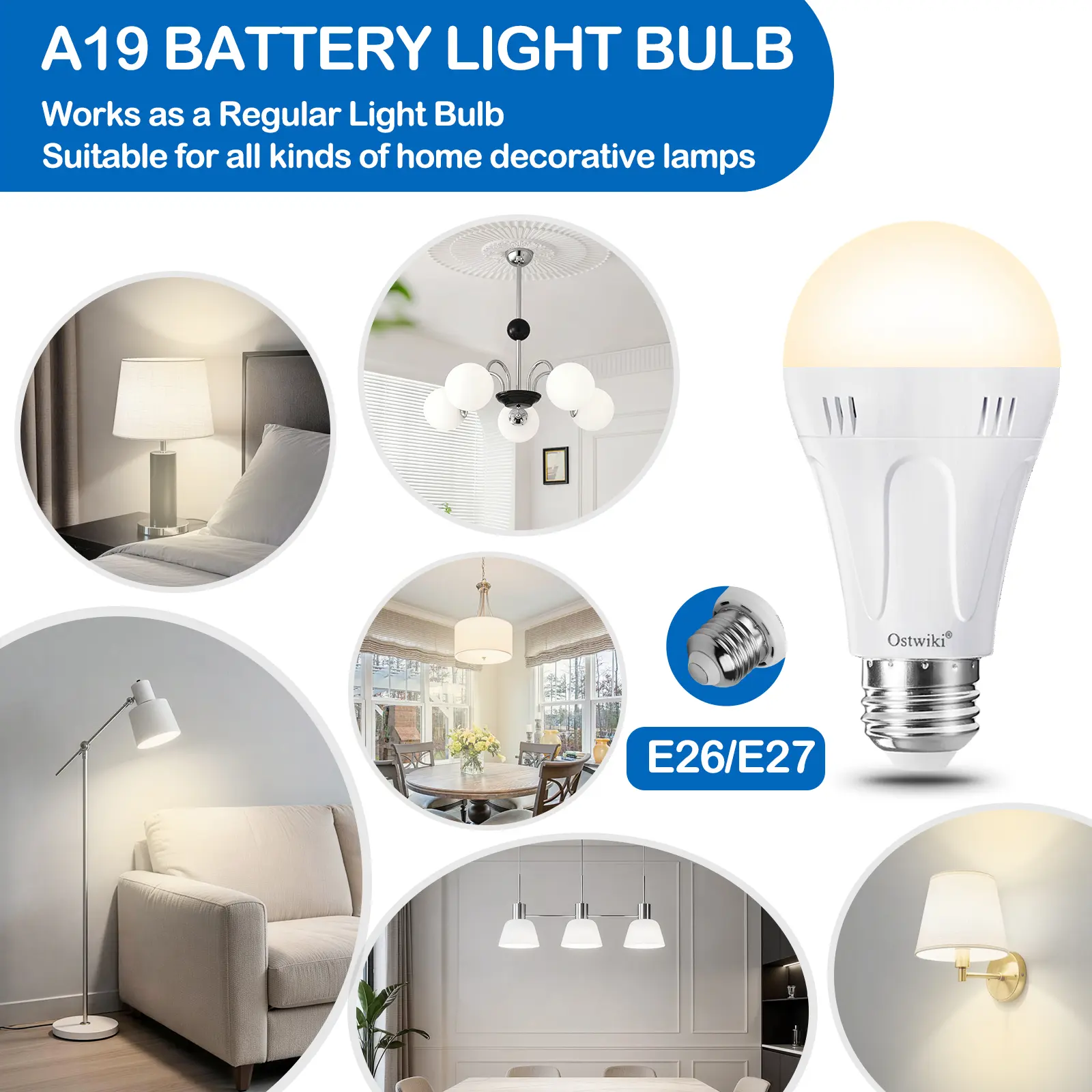 Ostwiki LED bulbs work just like normal A19 bulbs and can self-charge during daily use. Built-in batteries provide 2–8 hours of emergency lighting during power outages. Fits any fixture with E26/E27 base, making installation easy anywhere.
