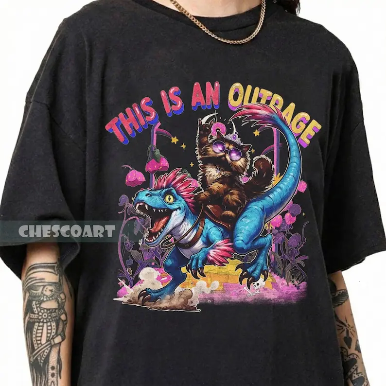[Sale up to 50%] [Free Ship] Vintage This is an Outrage T-Shirt, Princess Donut and Mongo Top, Dungeon Crawler Carl Shirt