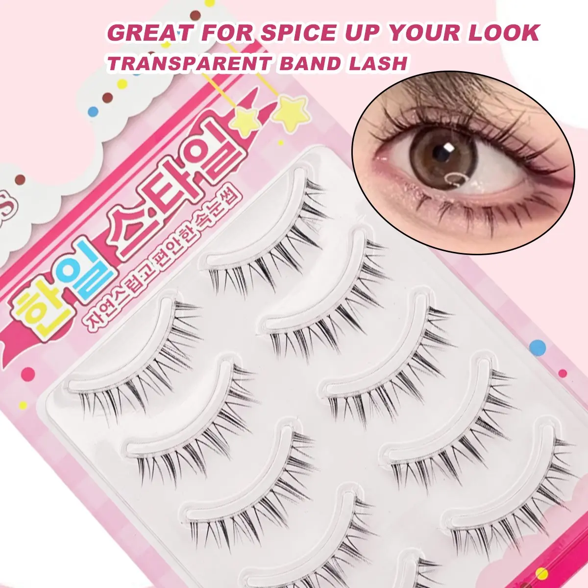 5 Pairs Of Manga False Eyelashes Natural Long Anime Style Korean K-Pop Makeup Transparent With Spike Girl Idol False Eyelash Set Suitable For Daily, Date, Holiday, Party, Wedding, Goddess Makeup