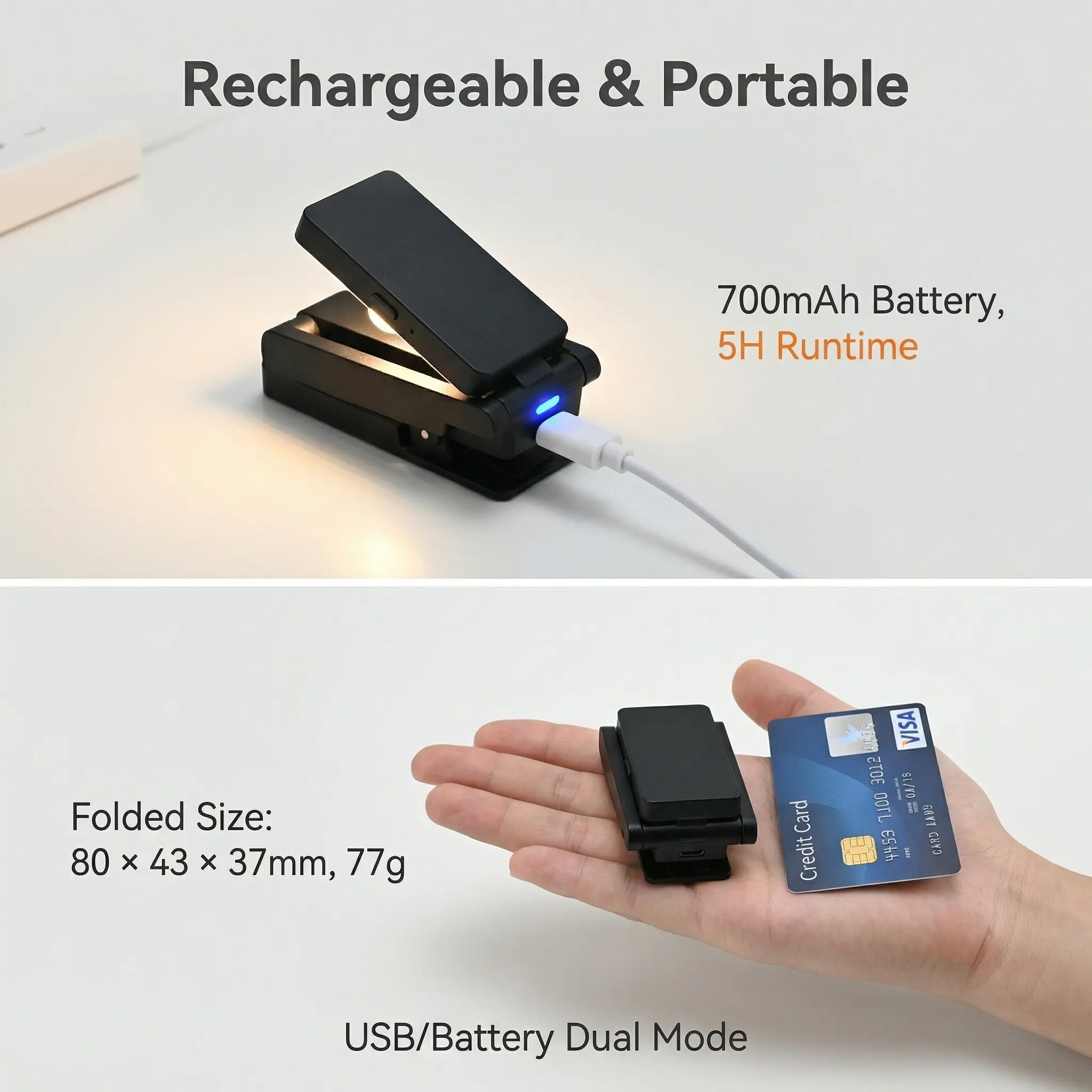 USB multifunctional intelligent reading light, portable reading light, clip on reading light, bedside reading eye protection light, three color temperature, flexible design, rechargeable, long-lasting battery life, suitable for outdoor use