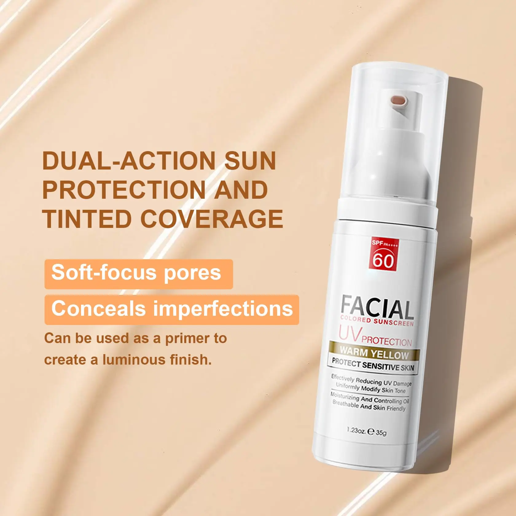 ·Tinted Sunscreen for Face: This tinted face sunscreen using a refreshing formula, provides broad spectrum SPF 60 protection and helps protect normal and sensitive skin types from UVA and UVB damage without leaving behind residue