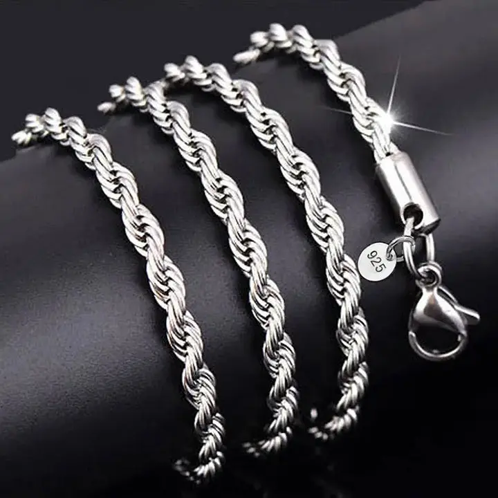 Silver Color Diamond-Cut Rope Chain Water Proof (Free Shipping)