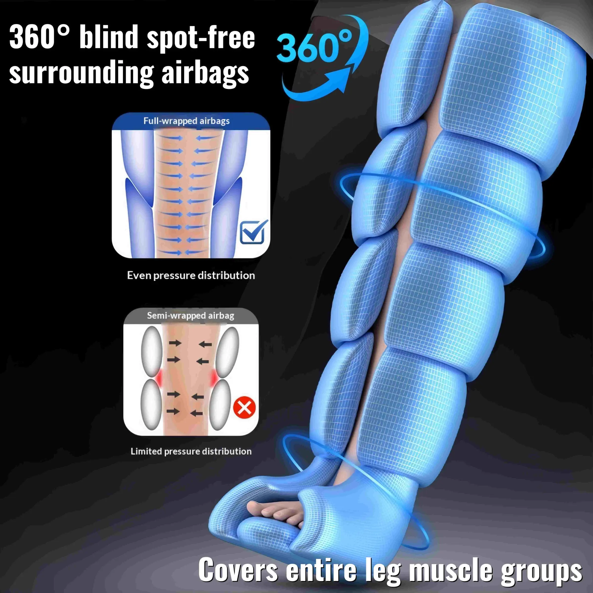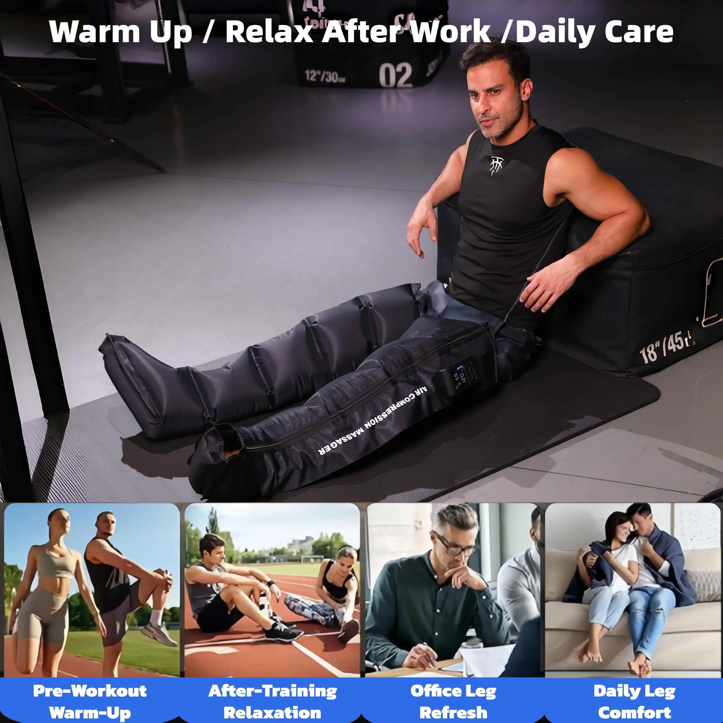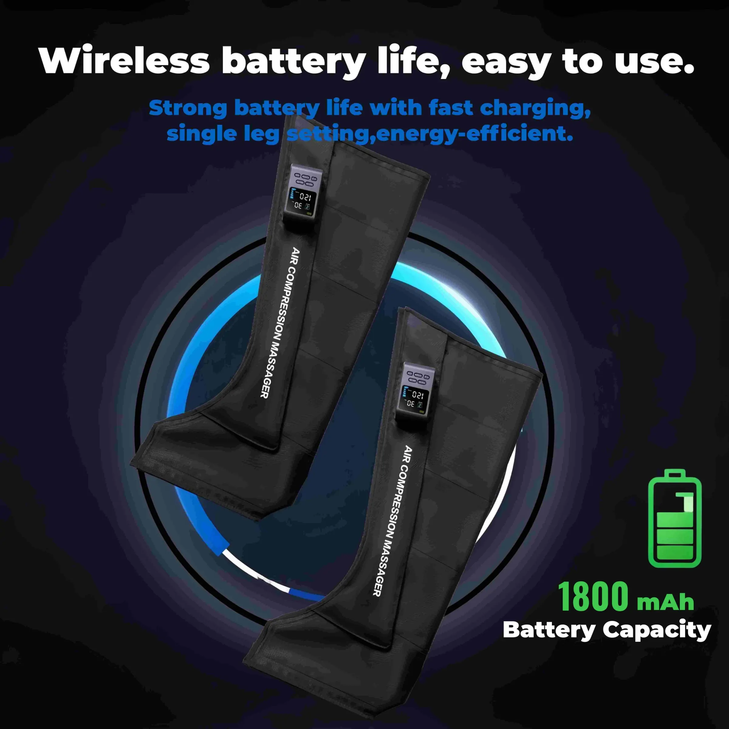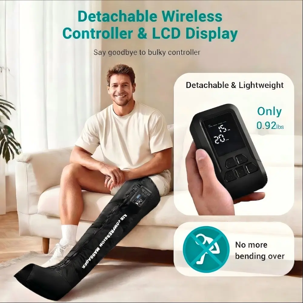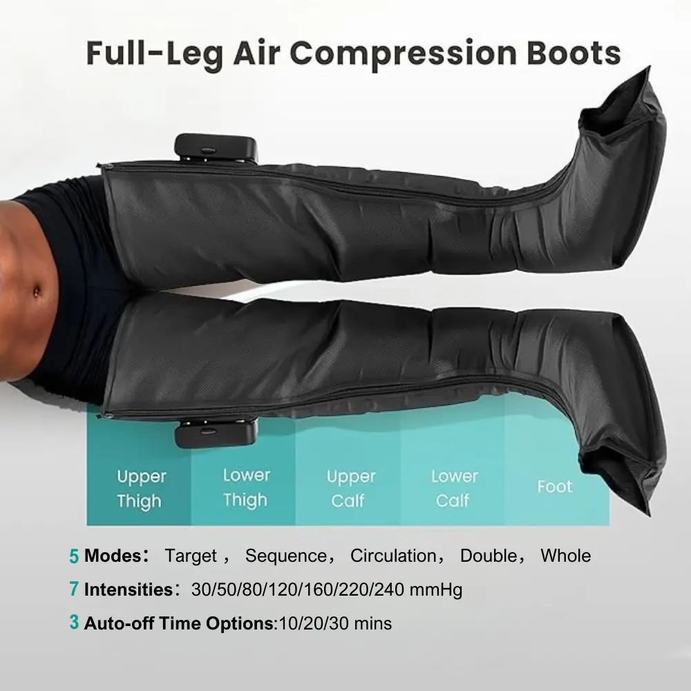 New Rechargeable & Cordless Full Leg Air Compression Massager, Sequential Compression Therapy for Circulation, Pain Relief & Muscle Recovery with Multiple Modes, Intensities & Timer
