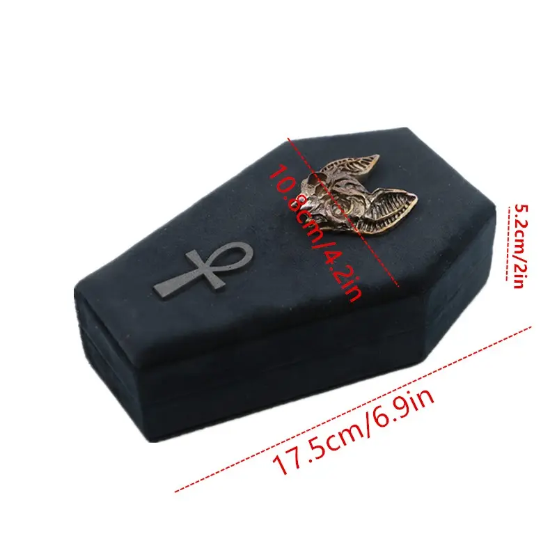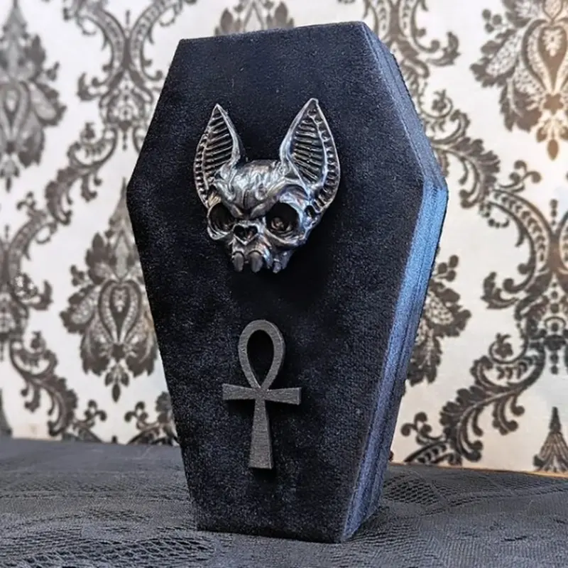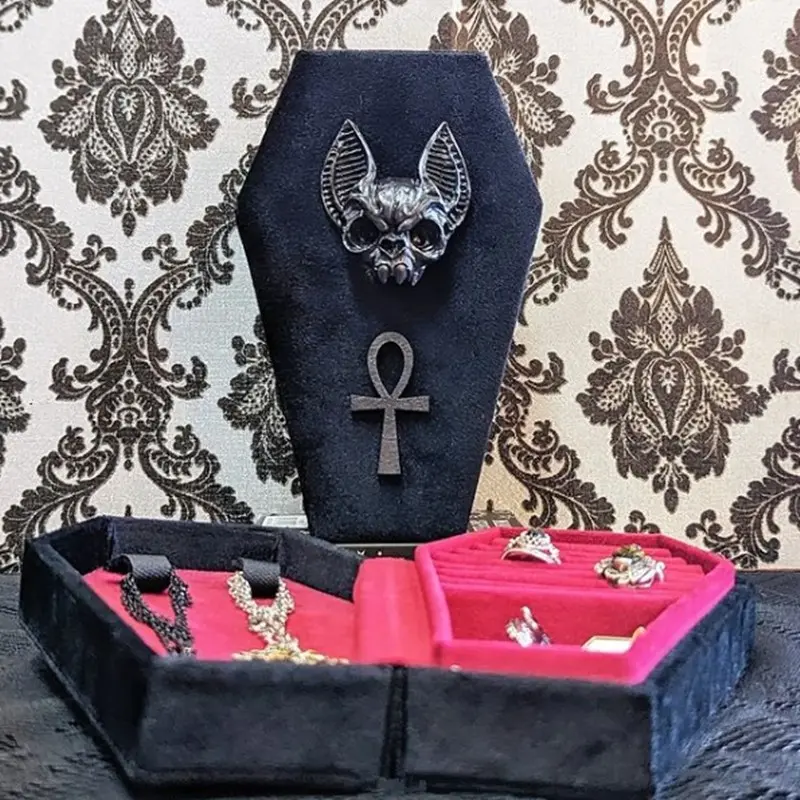 Gothic Vampire Bat Jewelry Coffin Box, Velvet-Lined Rectangular Storage Case, Earring Holders, Vintage Gothic Decor, Travel-Friendly Organizer