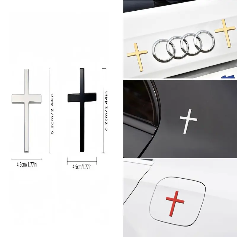 Car Metal Sticker 3D Cross Patch Scratch Cover, Personalized Body Decoration, Car Tail Decal, Unique Vehicle Ornament, Metal Cross Sticker