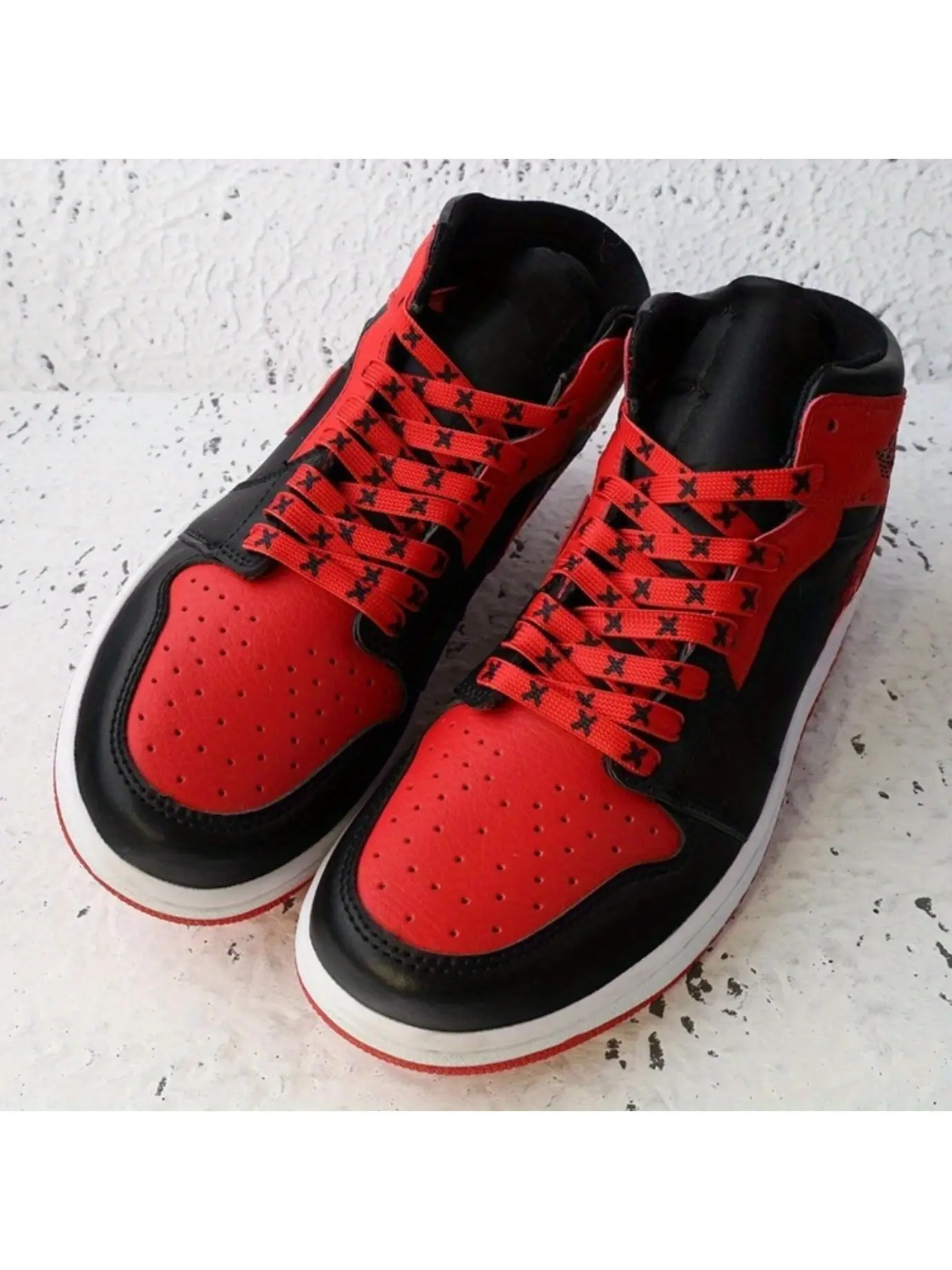 1pair shoelaces, personalized flat shoelaces, red and black shoelaces, mid top sneakers shoelaces, men's and women's shoe accessories, fashionable and cool, personalized shoelaces