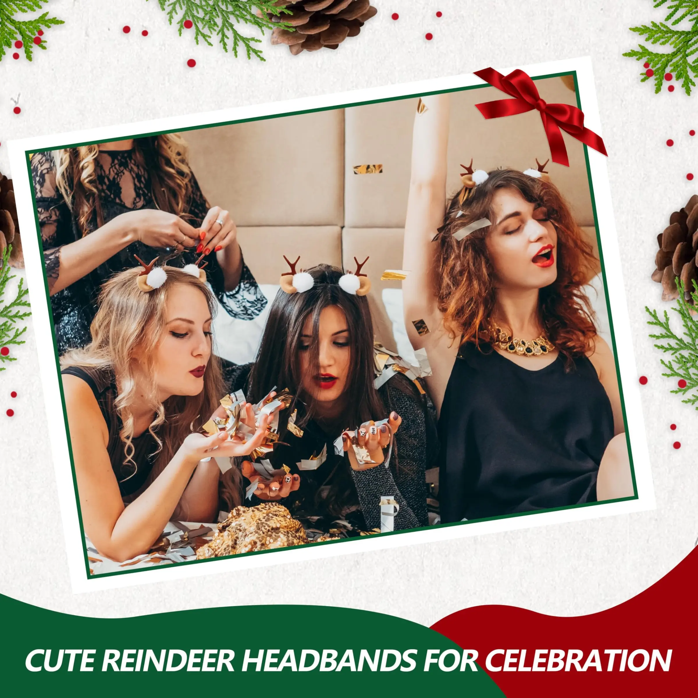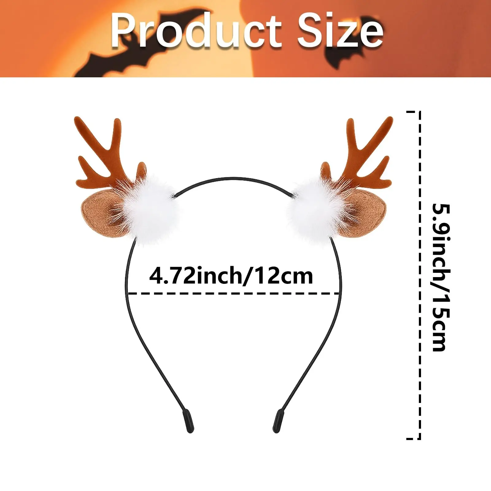 Reindeer Antler Headband – Plush Brown Antlers with White Fuzzy Ears Christmas Costume Accessory for Kids and Adults, Holiday Parties, Cosplay, School Plays, and Photo Props