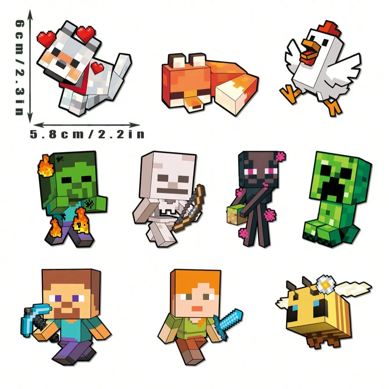 10pcs Pixel War Theme Birthday Party Gifts Soft Silicone Keychains, Steve Alex Creeper Characters, Backpack Pencil Case DIY Accessories