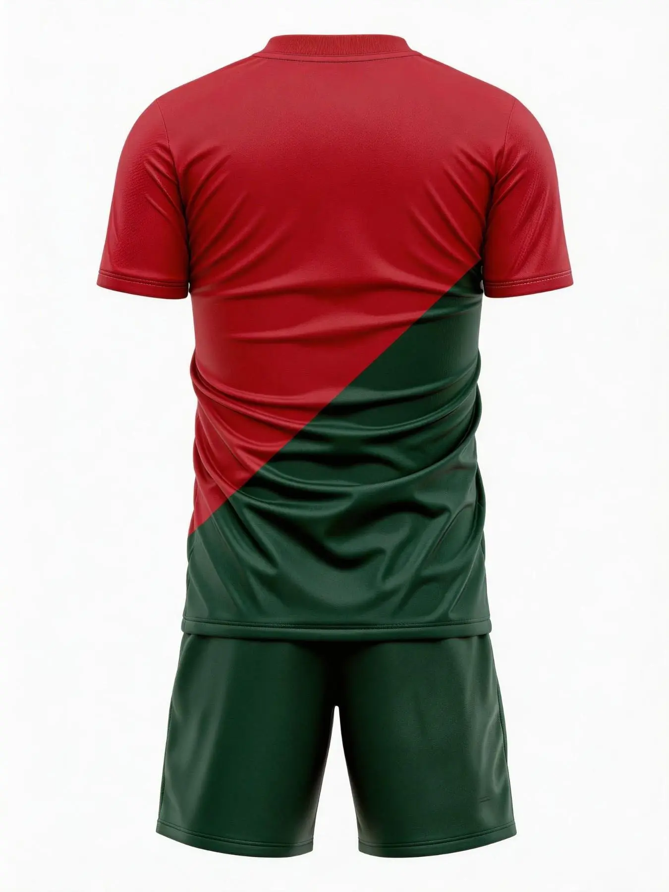 Men's Classic Colorblock Portugal Football Suit Set, Quick-Dry Breathable Training Match Jersey, Adult Team Uniform