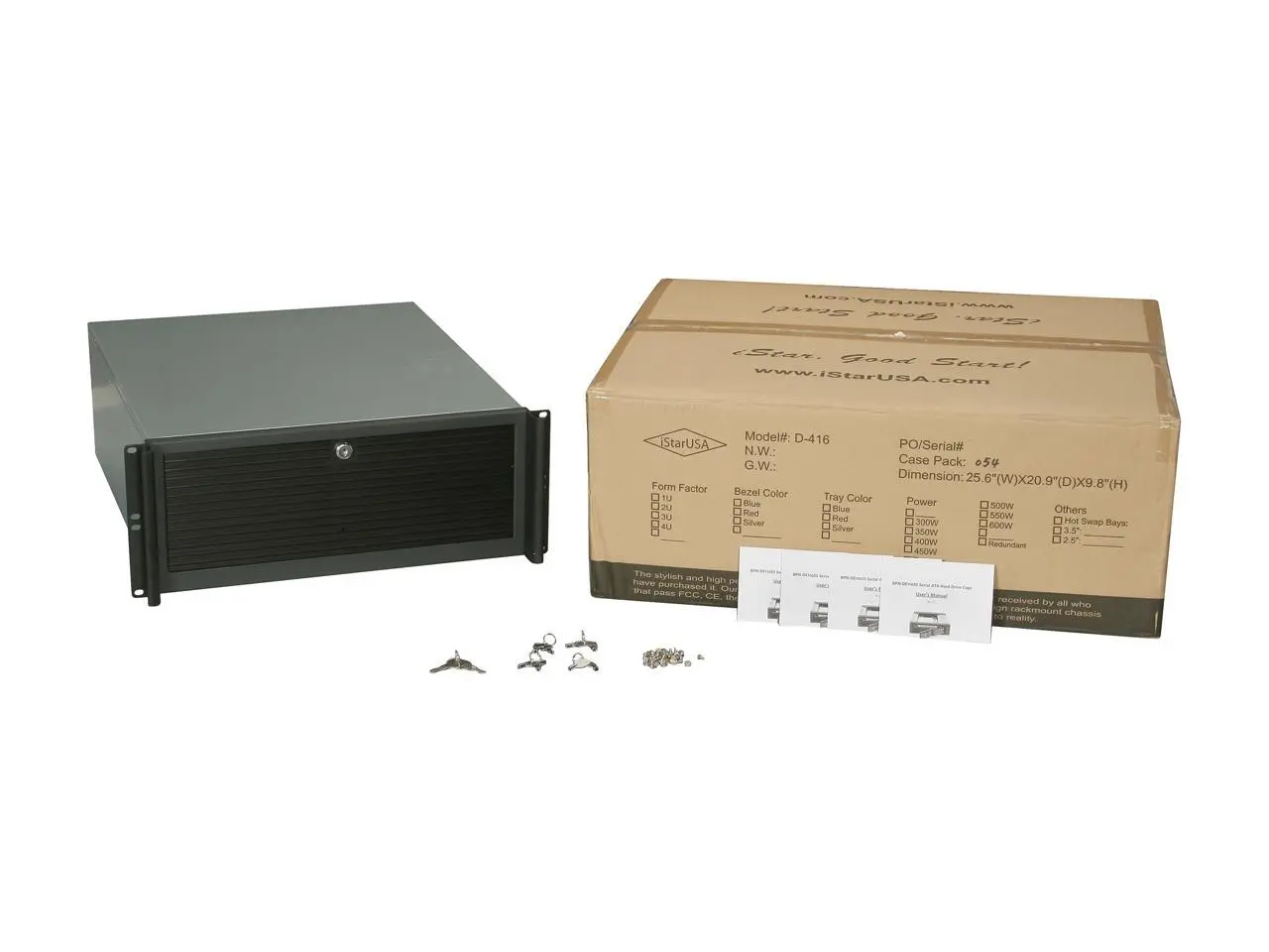 iStarUSA D416-5DE1BK Aluminum / Steel 4U Rackmount Compact Stylish Trayless Case - Black Bezel 1 External 5.25" Drive Bays
