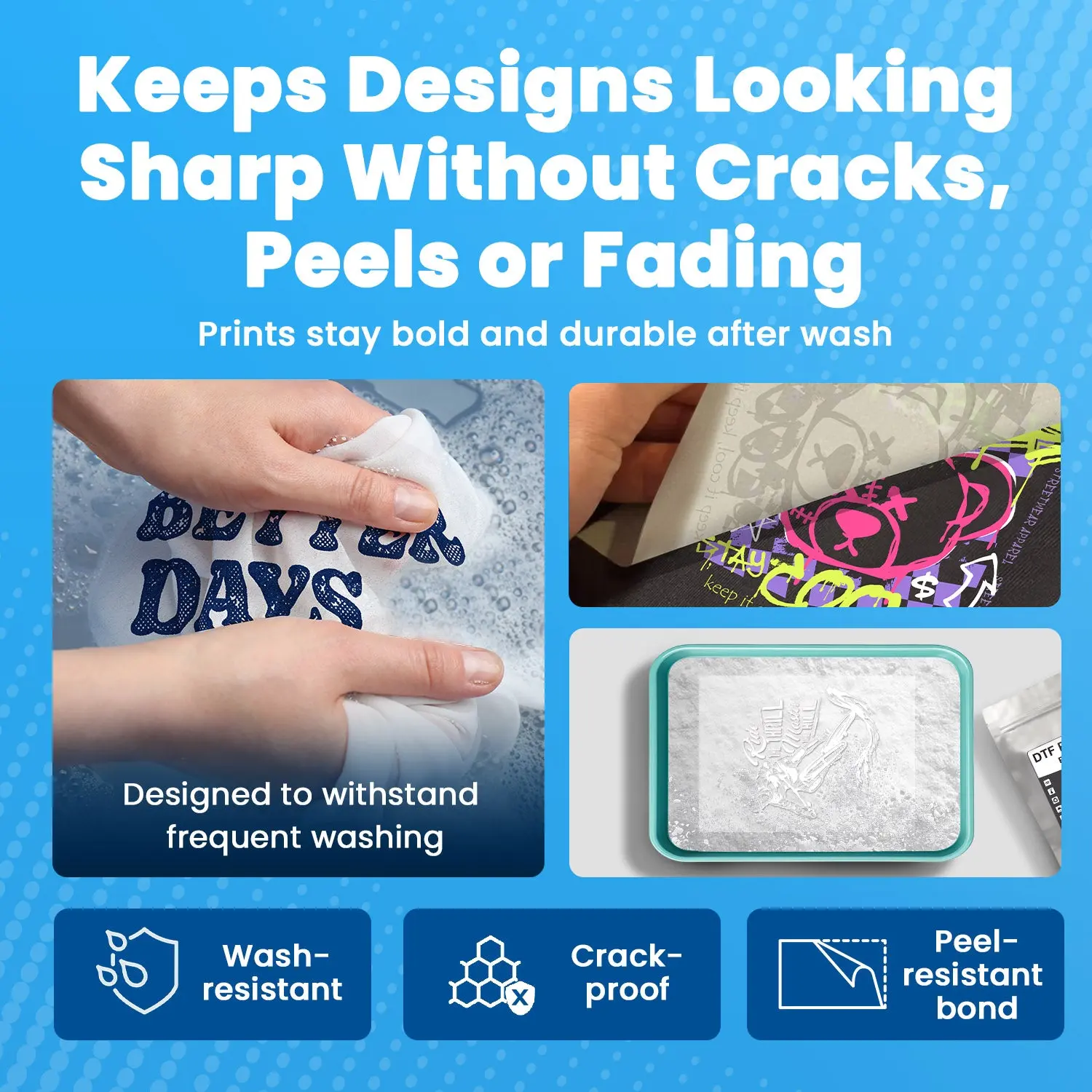 Durability is the hallmark of a professional printing business. Prints made with this DTF Powder are built to survive the laundry. The TPU material is resistant to detergents, high temperatures, and mechanical friction in the washing machine.