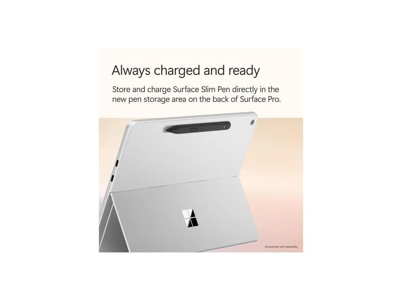 Expand your creativity with Surface Slim PenAlways handy and chargedSurface Slim Pen magnetically attaches directly to the back of the 12-inch Surface Pro for storage and charging. Feels naturalHaptic feedback makes using Surface Slim Pen feel like writing on paper and its design fits comfortably in your hand. Pinpoint accuracyYou'll enjoy superior accuracy, shading, and pressure sensitivity thanks to precise inking. Quick access with a press of a buttonInstant CopilotOpen Copilot with a single key to help improve productivity and simplify daily tasks. Mute quicklySimply tap the key to quickly unmute or mute your microphone.