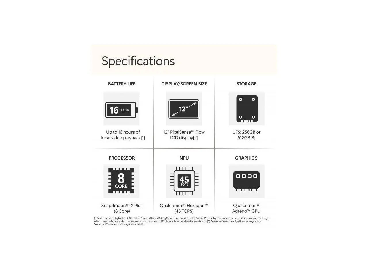 Surface Pro 12-inch Keyboard transforms Surface Pro, Copilot+ PC, 12-inch into a complete laptop, while you enjoy exceptional accuracy, incredible shading, and superior pressure sensitivity with Surface Slim Pen. Built for everyday work or playThe smooth-matte palm rest is durable enough for everyday use, offers a sleek look, and is easy to wipe clean. Full-size, backlit keyboardThe keyboard's size makes it comfortable for typing, and the built-in backlighting improves key visibility. Precision touchpadEnjoy precise clicking and scrolling with the spacious, responsive touchpad. Switch positions seamlesslyDesigned to easily snap into place, the dynamic hinge flexes 360 degrees so you can find the right posture that's comfortable for you.
