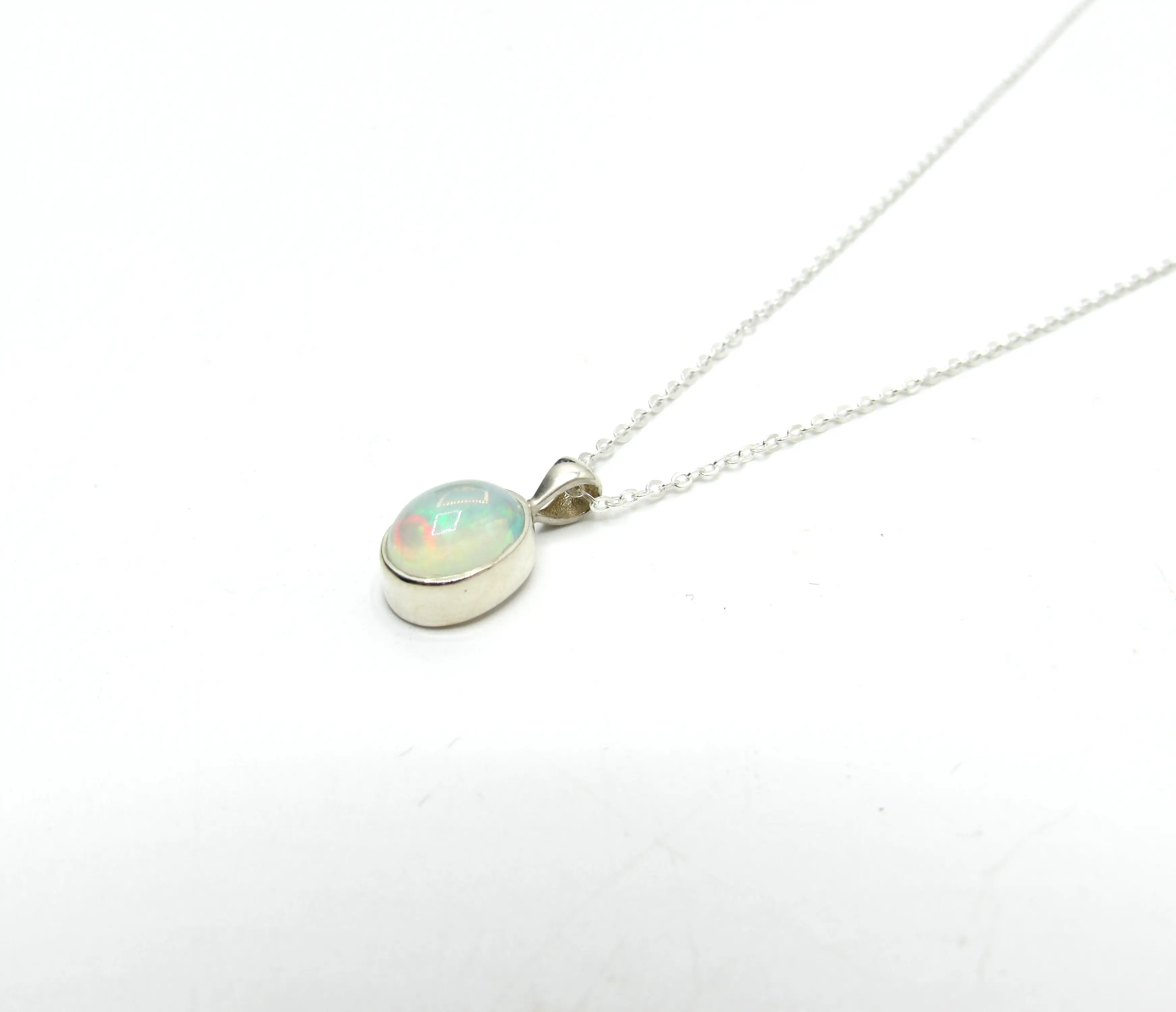 Ethiopian Opal is known for its natural play-of-color, where light reflects through microscopic silica structures within the stone to create shifting flashes of color.