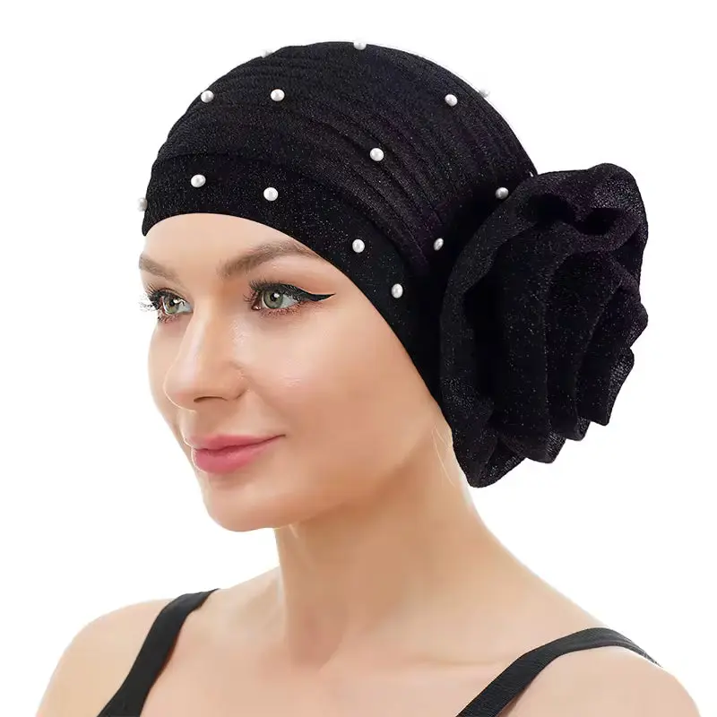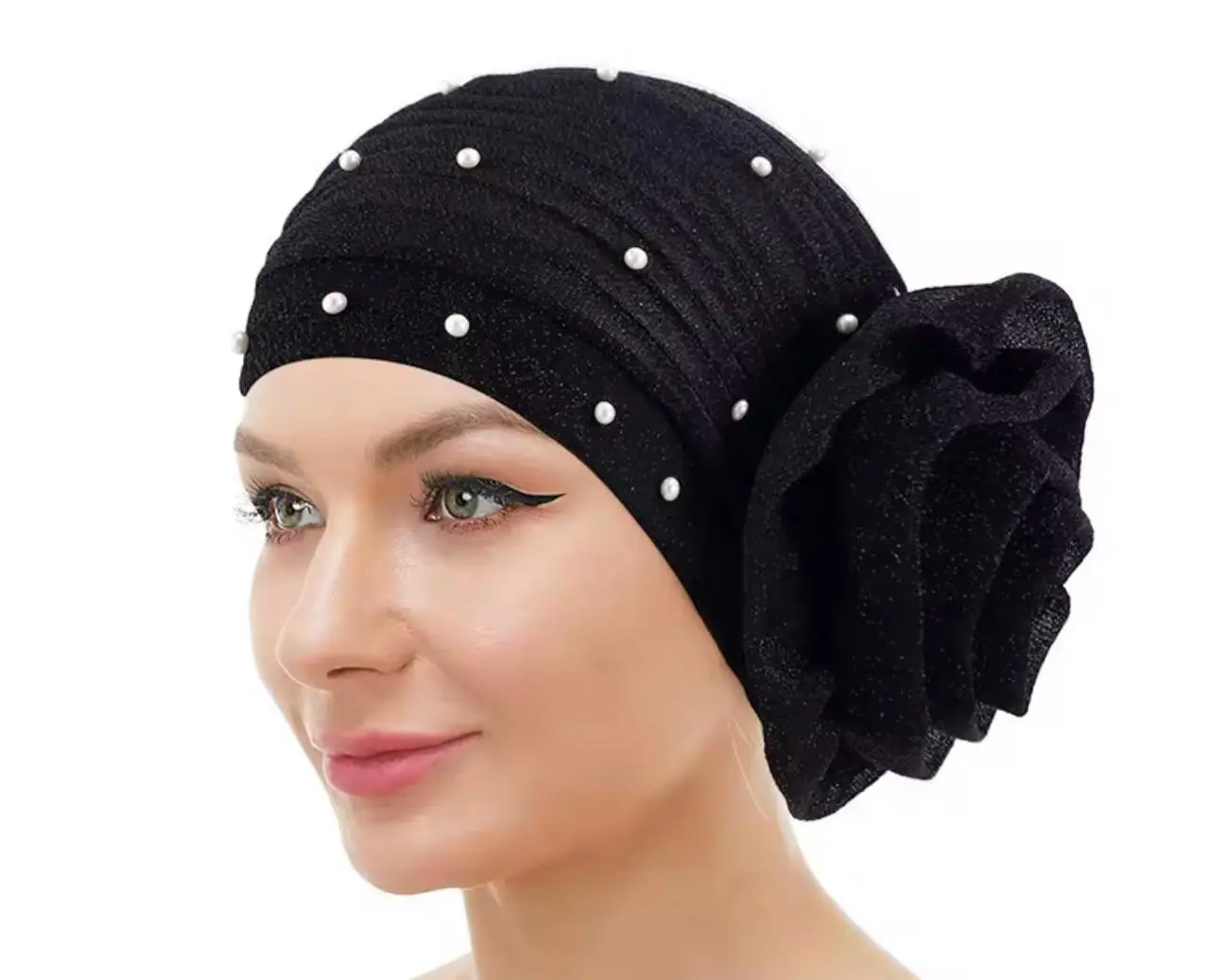 Pearled Turban Hijab - Black