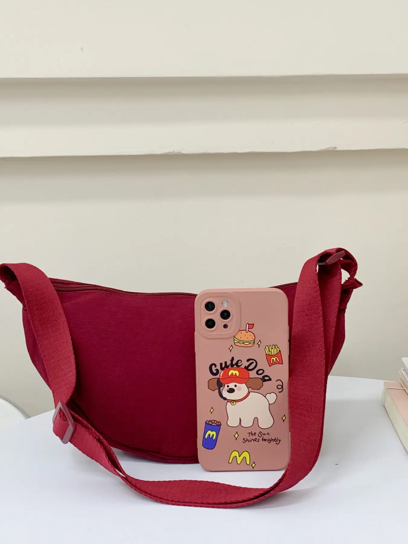 Smart Moon Shape Bag, Adjustable Shoulder Strap Mini Bag, Lightweight Waterproof Nylon Material, Zipper Closure, Casual Crossbody Bag for Everyday Use