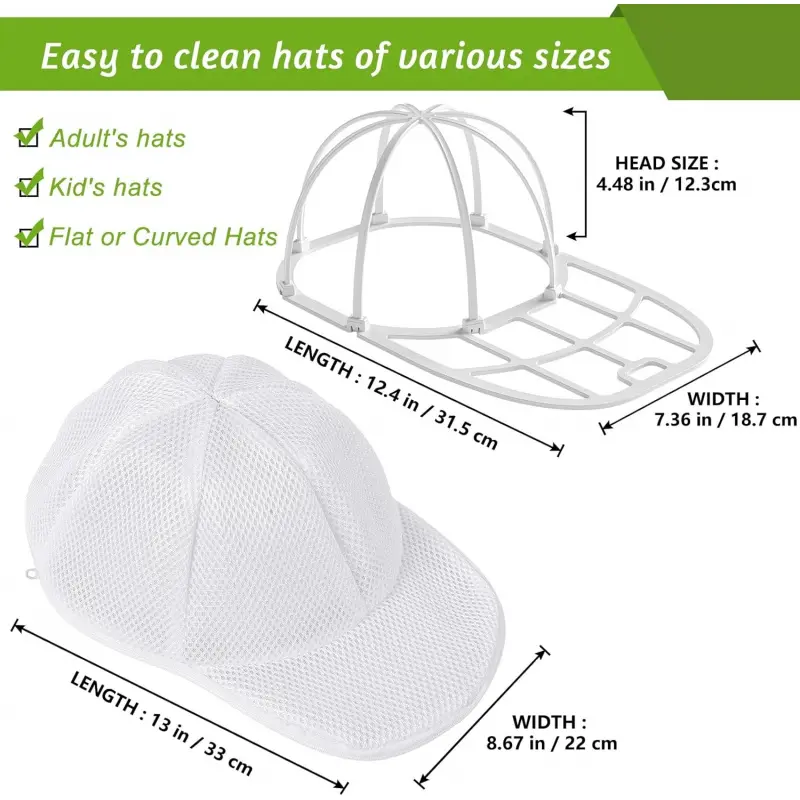 Hat Washer Cage, Hat Washer for Baseball Caps for Washing Machine or Dishwasher, Ball Cap Washers Frame for Flat and Curved Hats, Hats cage, Fit for Adult and Kid's, 1 Pack White