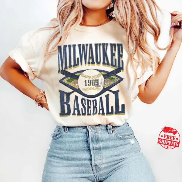 [Sale up to 50%] [Free Ship] ưMilwaukee Baseball T-Shirt, Vintage Washed Tee, Game Day Oversized Graphic Tees