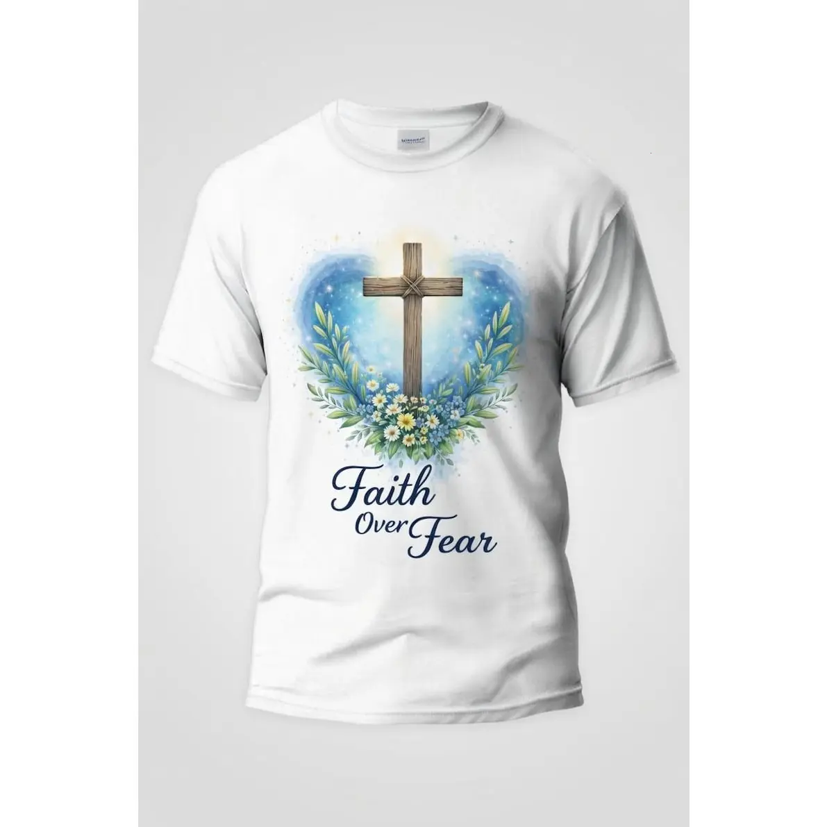 [Sale up to 50%] [Free Ship] Faith Over Fear Christian T-Shirt, Jesus Cross Religious Shirt, Christian Apparel, Women Faith