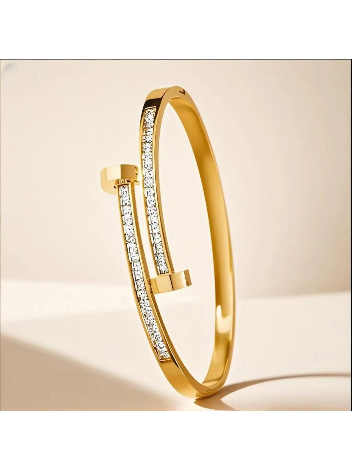 Adjustable Open Cuff Diamond Bangle for Women, Elegant Gold/Silver Plated CZ Bangle, Fashion Jewelry for Daily Wear, Birthday Gift