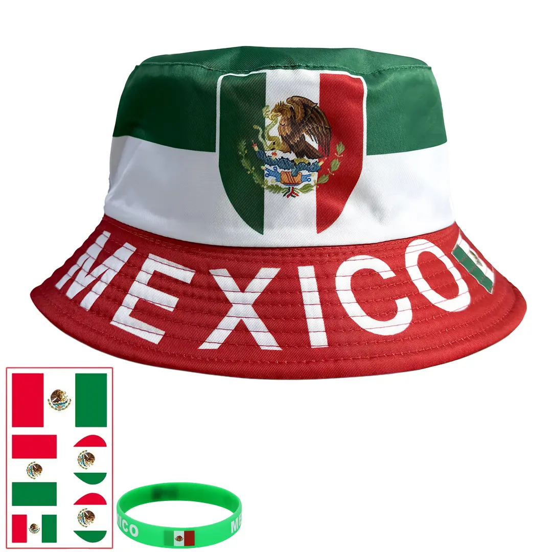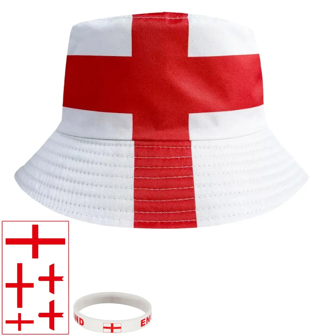 World Cup Fan Gear - Bucket Hat, Silicone Wristband & Temporary Tattoos for Argentina, Brazil, USA, Mexico, England Fans | Soccer Party, Stadium Cheering, Sports Accessories