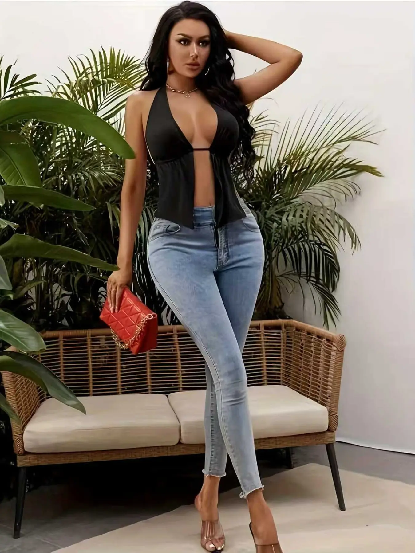 Backless Halter Top, Sexy Backless Design, Elegant Style, Perfect for Parties & Events, Women's Fashion Clothing
