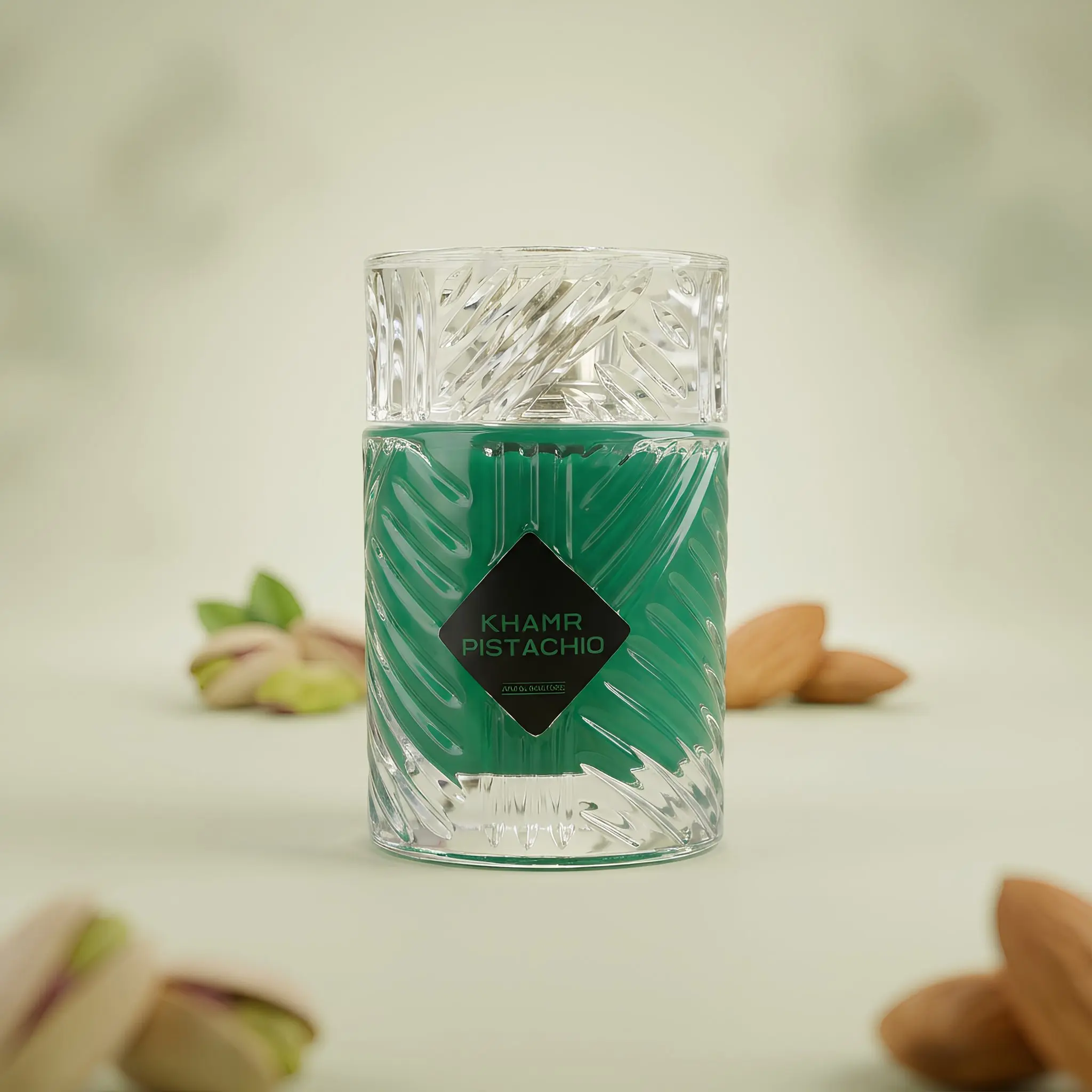 Khamr Pistachio is a decadent fragrance that wraps you in a cloud of sweet sophistication. Opening with playful notes of candy floss, vanilla, and tonka bean, it melts into a creamy heart of lily of the valley, peony, and whipped cream. The scent finishes on a rich, nutty base of pistachio and roasted notes—creating an irresistibly warm, gourmand signature.