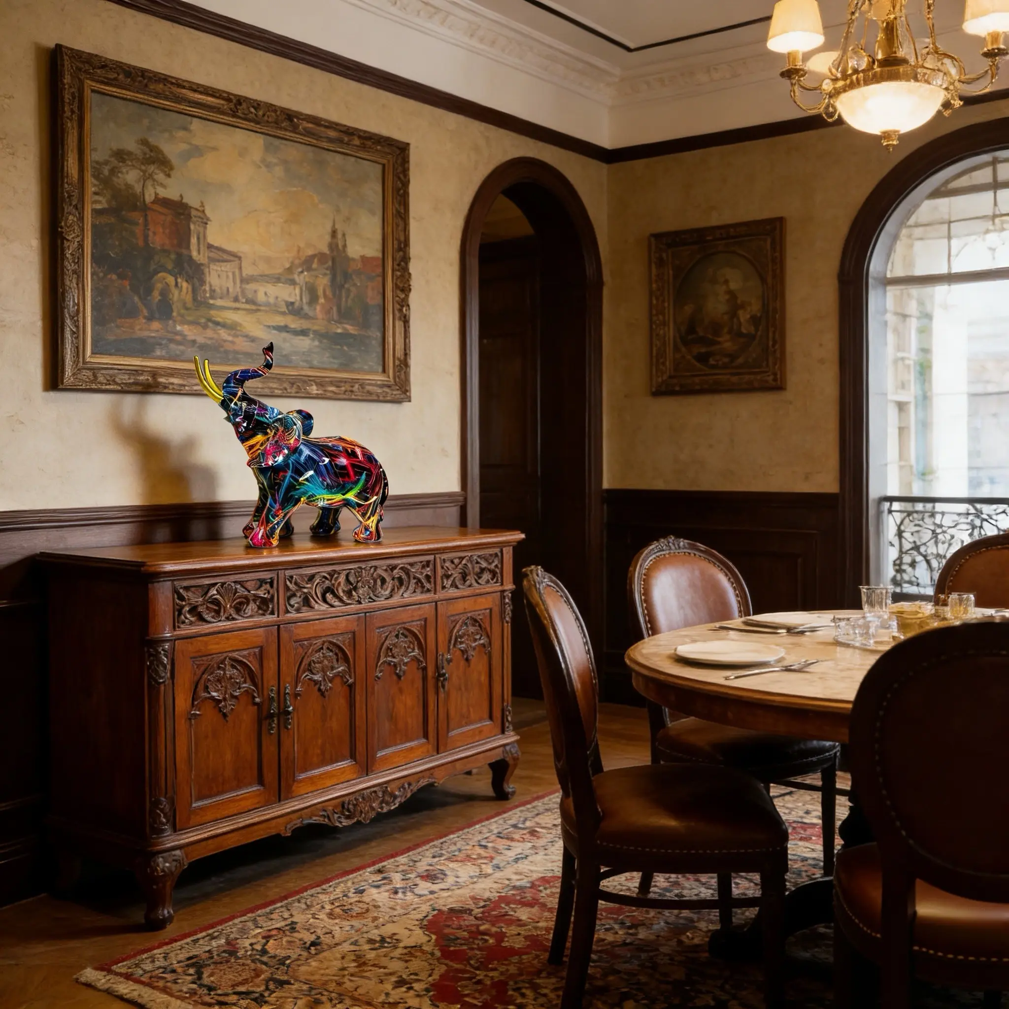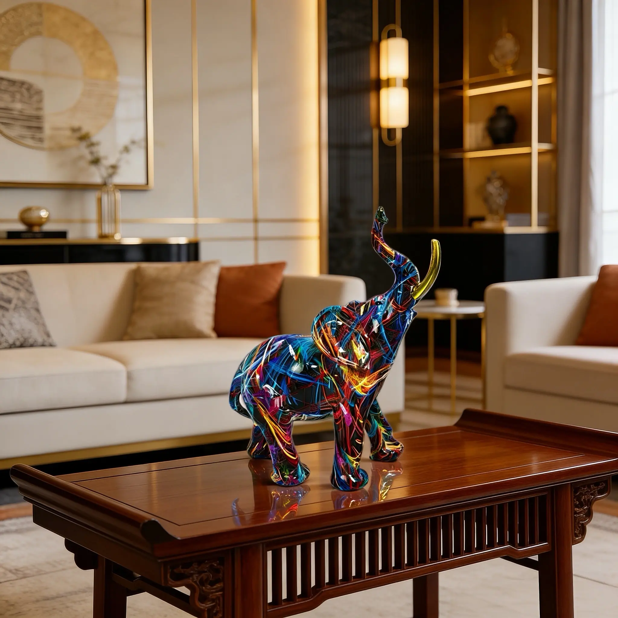 Colorful Resin Elephant Statue, Artistic Elephant Sculpture, Feng Shui Decor, Kitchen Office Shelf Home Decoration