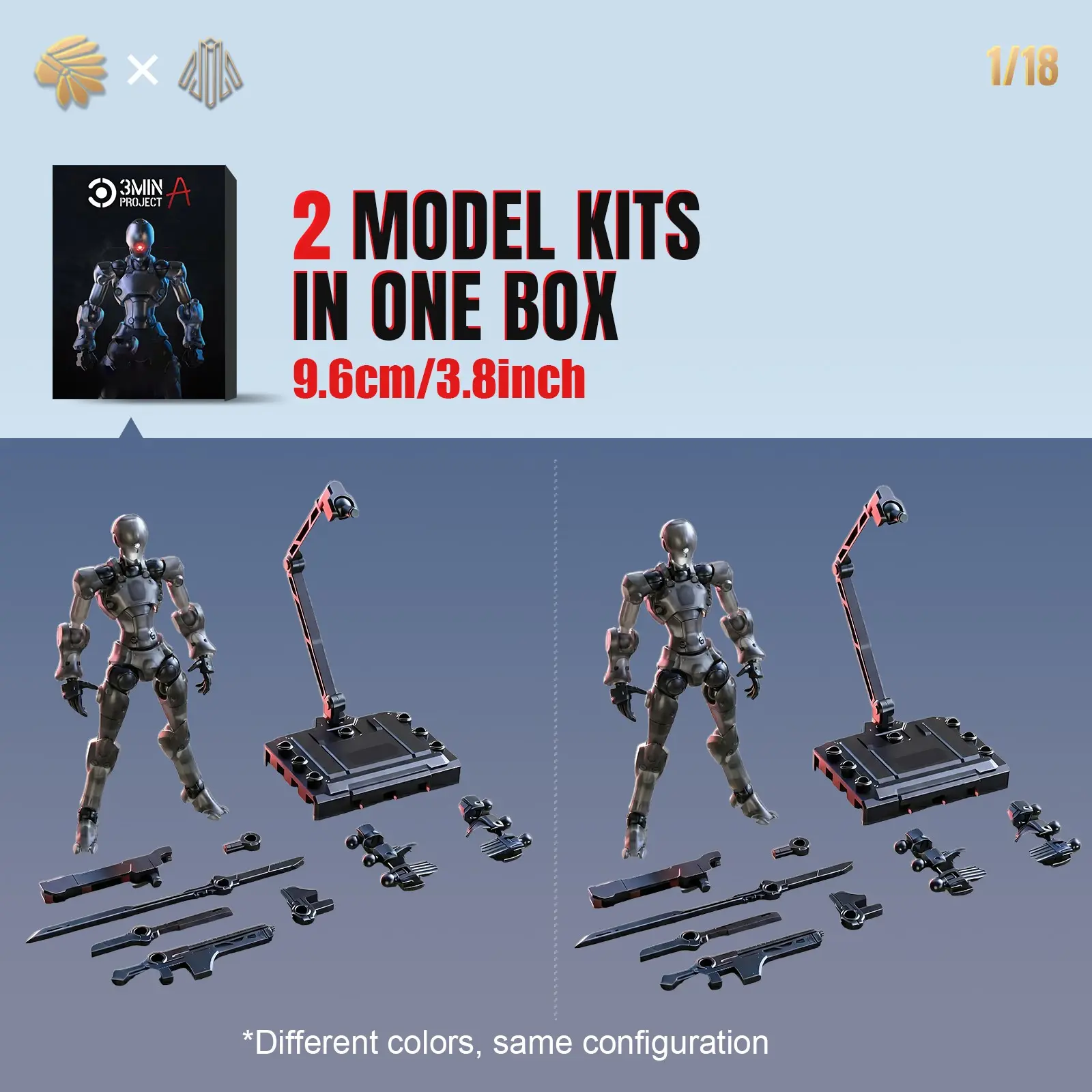 Sci-Fi Mecha Model Kit Set, 1/18 Scale Fully Poseable Robot, 11.2cm Tall, Includes Storage Base, Replacement Hands, Tactical Gear
