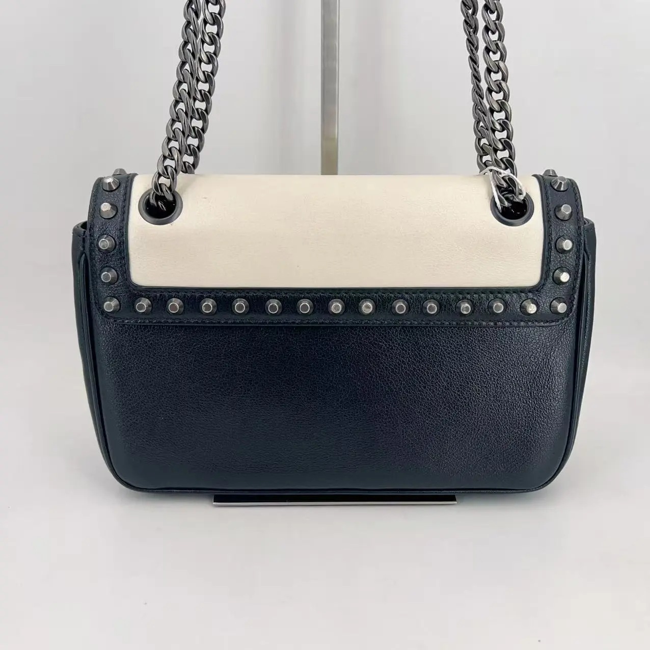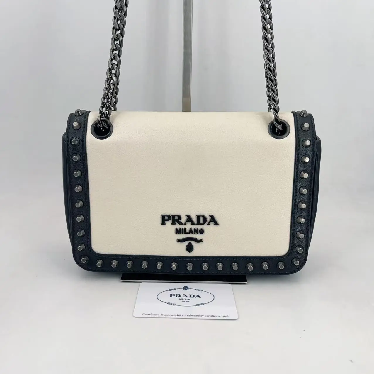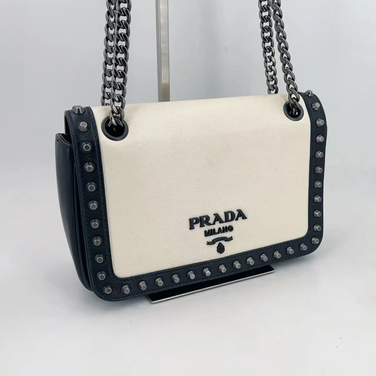 Pre-owned PRADA leather Crossbody Bags Glace Calfskin Studded Crossbody White Black