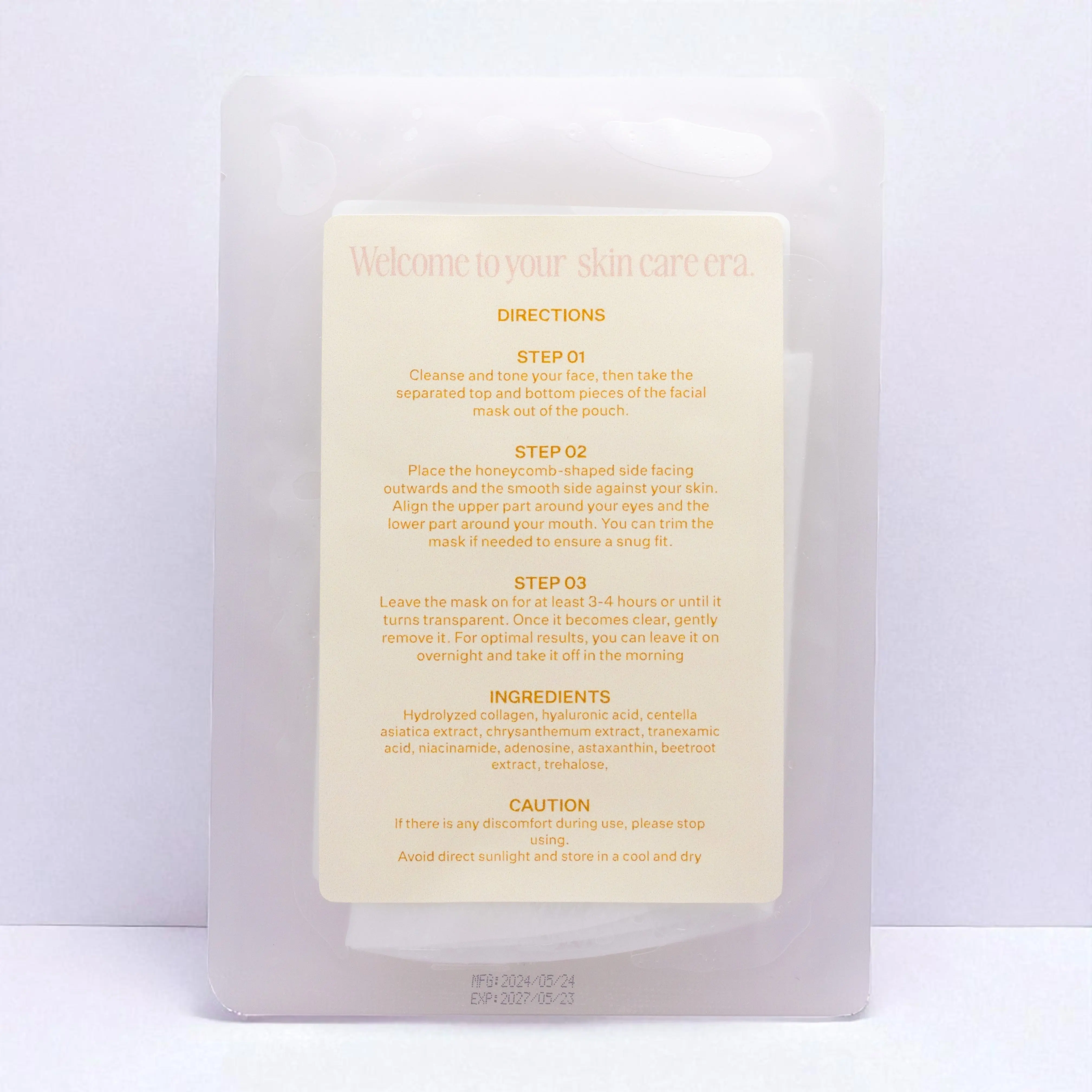 Leave the mask on for at least 3-4 hours or until it turns transparent. Once it becomes clear, gently remove it. For optimal results, you can leave it on overnight and take it off in the morning